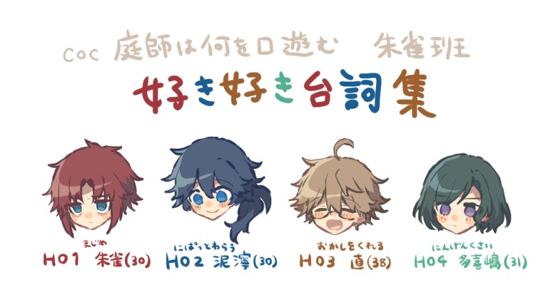 kiseibarukan☆quiet followSPOILER庭師は何を口遊む 朱雀班好き好き台詞集(庭師バレ 未通過×) show all(+1 images) Tap to full screen (size:1024x564).Repost is prohibited Let's send reactions! freqpopularsnackothersPayment processing Replies from the creator Follow creator you care about!☆quiet follow kiseibarukanSPOILER庭師は何を口遊む 未通過さん×通過してから初めての2/29なので。 kiseibarukanSPOILER海も枯れるまで 未通過さん×自陣概念絵-------------------------------------おまじないしよっか今まで自分が出した声は、忘れて澪の声は、今までよりちょっと低くてもしかしたら、高い声が出せないかも澪が、その子の姿になって悪かったな、よくないなって思うんだったら……手放そう? kiseibarukanDONE庭師未通過さん× 庭師自陣チーフ補佐笑顔二人の関係が最近なんとなく分かってきたけど言語化できなかったので漫画にしました。多喜嶋ちゃんの笑顔見た記憶があまりないので(私の中のチーフの記憶)、たぶん他の人にはこういう顔で笑うんだろうという幻覚の元描きました。解釈違いだったらすみません。あと冒頭描いてて心苦しかったのでごめんなさいします。好きです信じてください。 7 kiseibarukanSPOILERヴェルネの天使は死を歌う 未通過さん×。同卓PLさんと見学さんはOK!せっかくユーリくんが一緒に練習に付き合うといって、初めて一緒に二人で合わせた瞬間なのにダニエルに100ファンさせてしまい、自己肯定感下げ下げ卑屈ダニエルを作り上げてしまった図です。かわいそう。「いいよ気を遣わなくて…僕が…下手だから…」 kiseibarukanSPOILERヴェルネの天使は死を歌う 未通過さん×ヴェルネのお部屋ができたよ~!コマ置き場に探索者さんを置くともれなく天使になれる。何日目なのか見れる。夜探索時は暗くなったりとかする! 3 kiseibarukanSPOILERヴェルネの天使は死を歌う 未通過さん×自分でシーン名付けて自分で謎の感情になる会 recommended works 這い寄るぶりてんDOODLEクソしょーーーーもないツイがありえん伸びたのでカンタンに自班紹介イラストを描きましたあのツイはテンションがおかしかった時(夕方だったのに?)の出来心でした… FFFFFF9910SPOILERCoC 「庭師は何を口遊む」 狂崎班2年目~の絵2020年12月15年で2年目突入!2021.01.31 1枚更新これまでの絵はこっち https://poipiku.com/IllustViewPcV.jsp?ID=908629&TD=2346284 3 えどさきDONE※R-18 少し流血注意たまにキョンシーの捕食欲求抑えきれなくて暴走しちゃうといいなあ…pic衣装以外何もかもねつ造妄想ですパス…18↑? y/n @キュマ/小熊奈津SPOILER【庭師は何を口遊む】未通過×新規のスチル絵+旧のやつをまとめNPCがほぼです。順番はシナリオの内容順自陣はあれから1周年・・・シナリオは「もう3年も経つのか」前回プライベッターでまとめたものと新規で追加したものまとめたやつです。____________________プライベッターのリンクhttps://privatter.net/p/7158304 12 @キュマ/小熊奈津DONE5月5日 【庭師は何を口遊む】未通過❌NPCのお誕生日ということで @キュマ/小熊奈津DONE庭師は何を口遊む 未通過❌NPCの誕生日イラストとおまけふせったーにのせてないNPC落書き#みてみてUSB 4 柚木@trpgDONE庭師は何を口遊む HO1立ち絵ですー!楽しかった・・!KP、SKP、PL様方本当に楽しい時間をありがとうございました! えい_DOODLE庭師HO2が多忙に苦しむのを見られるタグ @キュマ/小熊奈津DOODLE【安藤蒼】ちょっと昔の やつゼロごはんより