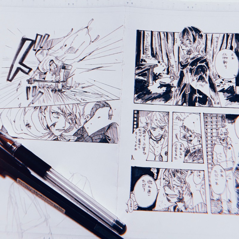 いつもA4の原稿用紙を折り曲げて描いてます。
