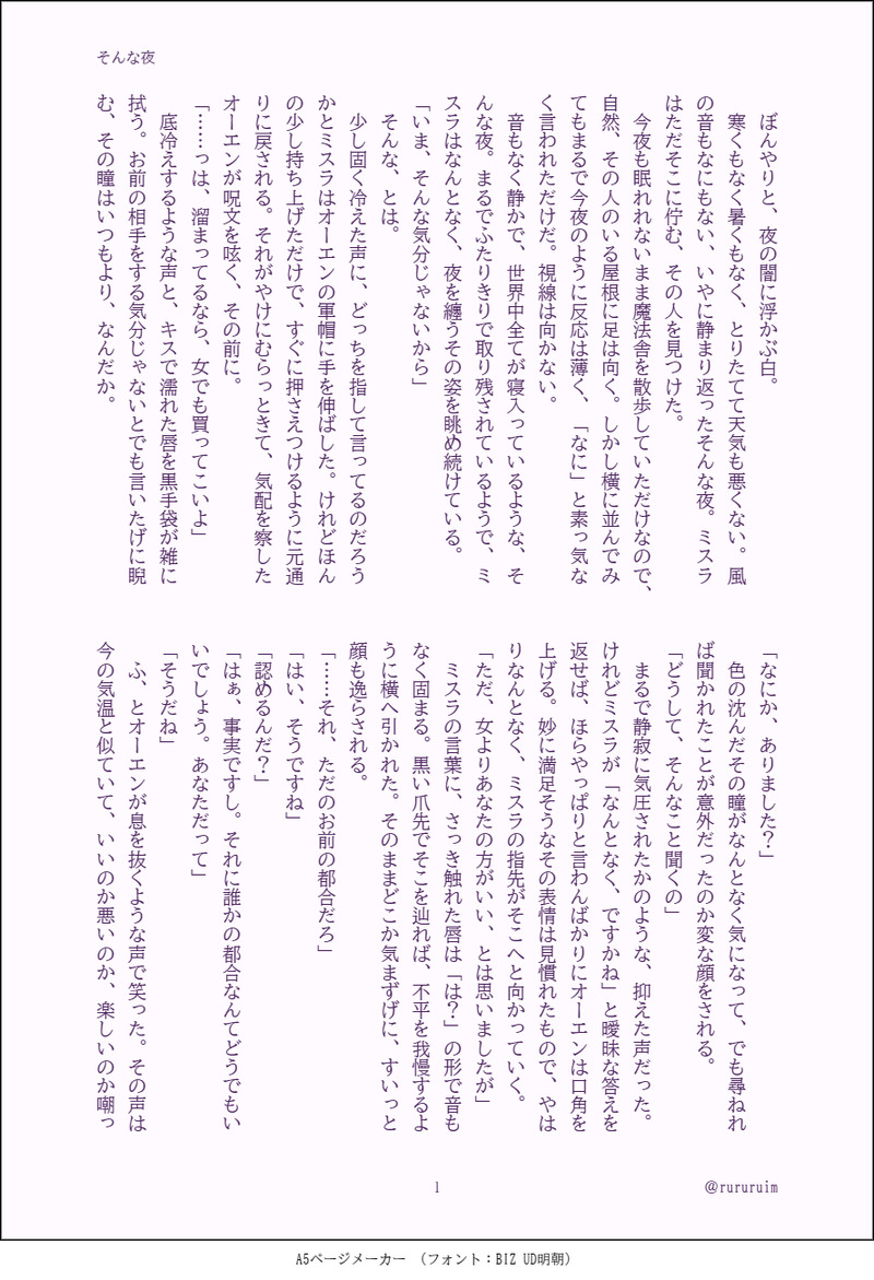 いむ𓃠☆quiet followDONEそんな夜 全年齢/全2ページひとりぼっちで取り残されたような、そんな気分になる夜も。 show all(+1 images) Tap to full screen (size:888x1300).Repost is prohibited Let's send reactions! freqpopularsnackothersPayment processing Replies from the creator Follow creator you care about!☆quiet follow いむ𓃠TRAININGかたちの名前 R18/全6ページご奉仕なんて好きじゃない。顎がつかれるし、おいしくもないし。けれどどうしてだろうね、悪くないって思えるのは。えろ練習。雰囲気でご覧ください。18↑? yes or no 6 いむ𓃠DONE広報課のオーエンくん 社会人パロ/全8ページ突然くだった異動命令。しかもその異動先は、オーエンが大ファンである企業モデル・ミスラの所属する広報課。同じ空間で同じ空気を吸うなんて無理でしょ馬鹿なのと人事課を呪うも、自分の歓迎会で酔っ払った挙句に起きたら隣にまさかミスラが寝てるとか……ねぇ、嘘でしょ。僕全然理解が追い付かないんだけど。 8 いむ𓃠DONEそんな夜 全年齢/全2ページひとりぼっちで取り残されたような、そんな気分になる夜も。 2 recommended works ego.DOODLEミスオエ体格差練習顔面つよつよ男たちの殺し合い最高すぎる 2 ego.DOODLEミスオエワンドロお題:クリスマス賢者初クリスマスなのであの世界にこのケーキあるか把握してませんごめんなさい! ego.DOODLEミスオエワンドロお題:寒波 水野しぶきMOURNING【ミスオエ】さかさま 7 水野しぶきMOURNING【ミスオエ】蜜月期と倦怠期における「食事にする? お風呂にする? それとも……」の違い 2 calmeMOURNING脈絡のないミスオエ事前、事後。見直してない。 5 水野しぶきREHABILI学パロミスオエ落書き文字書きの為の言葉パレットより♡衝動茫然地面現象追い討ち交差点 8 水野しぶきDOODLE【ミスオエ/オズフィガ】セックスしないと出られない部屋に閉じ込められた四人の話✰︎お題箱よりリクエストいただきました✰︎セックスしてるのはミスオエです 7600 ぱりこ2号DONEミスオエが死んだモブ魔女について世間話する会話漫画(202221204ミスオエwebオンリー悪食と甘党に展示予定だったもの) 11