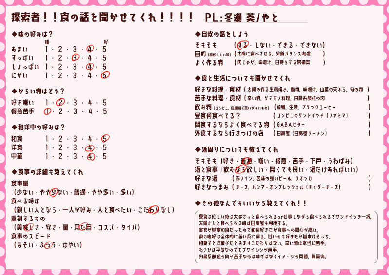 やと(ポイピクの姿)☆quiet followMEMO探索者食の話を聞かせてくれ… ##TRPG #資料 information show all(+9 images) Tap to full screen (size:1754x1240).Repost is prohibited Let's send reactions! freqpopularsnackothersPayment processing Replies from the creator Follow creator you care about!☆quiet follow やと(ポイピクの姿)MEMOヴェルネの天使は死を歌う探索者:ユリウス・ユーティライネン(12)出身:フィンランド 2 やと(ポイピクの姿)DOODLECoC:ルベライトジャムHO4 綾織 叶一郎(あやおり きょういちろう)未来は無数に枝分かれし、その中で求めるべき場所へ望んでたどり着くのは容易ではない。ならば占い師とは、暗雲乱流の中で僅かな光を掴み手繰る航海士である。可能性を束ね、切り開くべき道を指し人々を導く。未来は訪れるのではない、我々が未来へ向かうのだ。 2 やと(ポイピクの姿)DOODLE巳年とかうるせ〜〜!!!!!知らね〜〜〜〜!!!! やと(ポイピクの姿)DONE踊るのが好き楽しいのが好き食べるのが好き相棒が大好き! やと(ポイピクの姿)DOODLE11/23未だに再解釈できてない男通称じゃなくてそういやちゃんと兄だったっけって やと(ポイピクの姿)DONE狼さんが海外旅行に行くそうです related works べこDOODLEピンク色のバレンタインなヨウグズ🍫 ちゃづDONE描いたやつその1※茨あん、ジュンあん 17 2watoyoDOODLE【朝のボールペン落書き】【日楠♀】【先天性女体化】日高先輩×男装後輩サキュバス家系楠ちゃん。海編。本当に気にしてるのは。 ちゃづDONE描いたやつその1※茨あん、ジュンあん 17 ココノカSPOILER幻覚なので全くネタバレではないけど1072話の発言ネタ nnnnnnoodderaDONE【腐向け】チャバが酔ってハ崎さんに甘えてる漫画。ハ崎さんがトイレに行くのを我慢していたりする。 4 きくちゃんDOODLEサタン様犬好きかと思いきやロクサーンみたいなパターンもあるのでやっぱ人外思考なのかな~ きくちゃんDOODLEサタン様犬好きかと思いきやロクサーンみたいなパターンもあるのでやっぱ人外思考なのかな~ わたさくDOODLE recommended works ぽんずDOODLEレスおきスマホゲーまんがレスはきっと効率厨。笑そんな人のフレ欄に1人だけくっっっっそ弱いプレイヤー居たらもえませんか。。。私はもえる。。。( ˘ω˘ ) nemnem.PASTフタリソウサ助手元はインセイン/名探偵の殺し方用 穹野(そらの)DOODLE たか mytk_umaiMEMOクトゥルフTRPG未知なる山嶺を夢に求めて をやったよ日記(2枚目は微妙にネタバレ)初めて仲間のロスト経験してつらい 山と悪天候、壮絶 2 theonoTRPGDOODLEその他探索者(らくがき増えたらタグがふえるかも) 8 朝霞たかなDOODLE庭師。門月らくがき。門田さんのお誕生日に大月くんをプレゼントしました。 黒猫ソライムSPOILERCoC【故意に日暮、曖に夕立】⚠️ネタバレ注意⚠️使用したシーンイラストまとめ通過済みの方のみokでどうぞ。 8 かが@はちのDONEホル心自陣。生還報告できあがり😌👏🏻 natutubakicolorPROGRESSカスモツHO4 カシム・マフディー ♂普段着&お出かけ着。 2