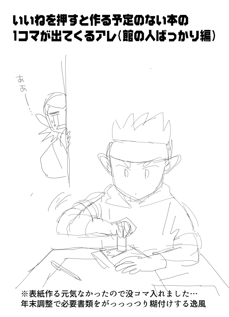 「いいねを押すと作る予定のない本の一コマが出てくるシステム」のタグでちまちま描きためたやつ、館オンリーイベントで執行人メンバーだけをまとめてみました。