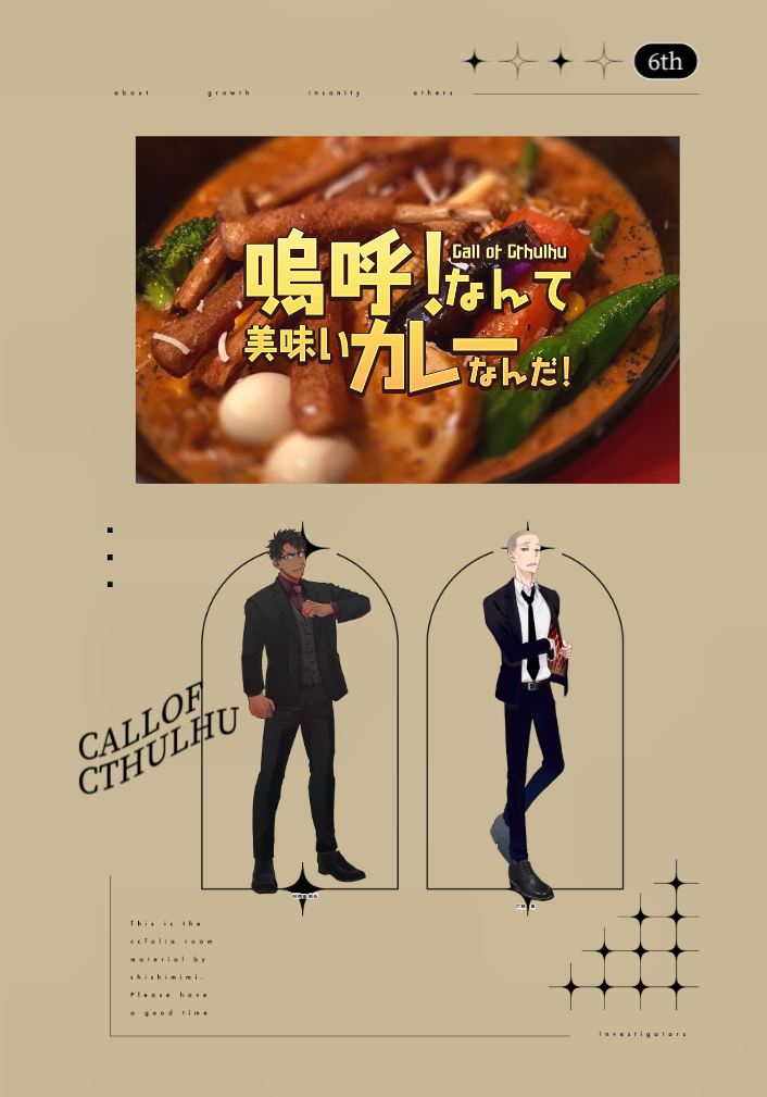 wako☆quiet followMEMOCoC6th『嗚呼!なんて美味いカレーなんだ!』3陣 2025.10.19KP:わこPL:三さん、もすさん黒蜥蜴のお二人でカレー! ##卓報告 Tap to full screen (size:706x1009).Repost is prohibited wakoSPOILER『嗚呼!なんて美味いカレーなんだ!』※ネタバレPW:ok諸事情により急きょ用意 wakoMEMOCoC6th『嗚呼!なんて美味いカレーなんだ!』3陣 2025.10.19KP:わこPL:三さん、もすさん黒蜥蜴のお二人でカレー! wakoPROGRESS【CoC パドーデビルの嘲笑 / ヴァンプブラッドの艶笑】お部屋 進捗 2 wakoMEMOCoC6th『あのマーケットへ向かう』2025.10.15KP:わこPL:そぼんさん / PC:善能 芳墨 wakoMEMOinSANe『海鳴りの邸』2025.10.11,12GM:わこPC1:くっきーさん、PC2:きびさん、PC3:みみみさん 2 wakoPROGRESS【ガイアケアTRPG 霧中復讐鬼談】お部屋 途中※一部シナリオ付属の素材をお借りしています recommended works LEON_OHKA3MEMOランスが媚薬10本飲まないと出られない部屋に入れられた話2。オタラン⏳🪐18歳以上? 2606 凛子@amanatsu0202DOODLE♨️コラボ 9 nazenazenaniyueMOURNING社会人同棲主明酔っ払って明智に絡む飲み会帰りのぺごの漫画(2P)未完成ゆえに作画が所々アレですが、お直しの予定はないので、供養として投げちゃいます 3 もなかDOODLEキュー◯ィーハ◯ーをお見かけしたので…☆矢のお色気担当サガにやってもらいました黒様もいます。オマケの弟付き(申し訳ない…疲れているので) 2 樹木サクサクDOODLE『プロローグ感想』続きバチキンって馬鹿なんだな~~って思ってプレイしてます。すごくストーリーの見方変わって面白い。 6 🐣堅揚げひよこ🐣DOODLE⚠️冒涜都市Z(ネタバレはないけどフェイブル大佐が出てくる)えろいアリス嬢が見たくて始めた産物。の、導入部分。妻に手を出されたらアーサーはどんな行動に出るんだろうね...自陣KPは四肢を引き裂かれるって言ってた。楽には逝かせないよなあ☺️ 2 Junka1711DONE3周年おめでとう‼︎ムーちゃんお誕生日おめでとう‼︎大好き‼︎ 2 -ごま-DOODLE推しを貼る会 komari_irstDONE︎︎⟡ Night Light ︎︎⟡︎︎⟡••┈┈┈┈••︎︎⟡••┈┈┈┈••︎︎⟡HO2 貴方の心は傷だらけだ冬雪 夜空⟡••┈┈┈┈••︎︎⟡••┈┈┈┈••︎︎⟡2024.12.2421:00 ~ 𝚂𝚃𝙰𝚁𝚃「あ……えっと……ごめん……」「服作るのは好き。黙々出来て楽しい。」
