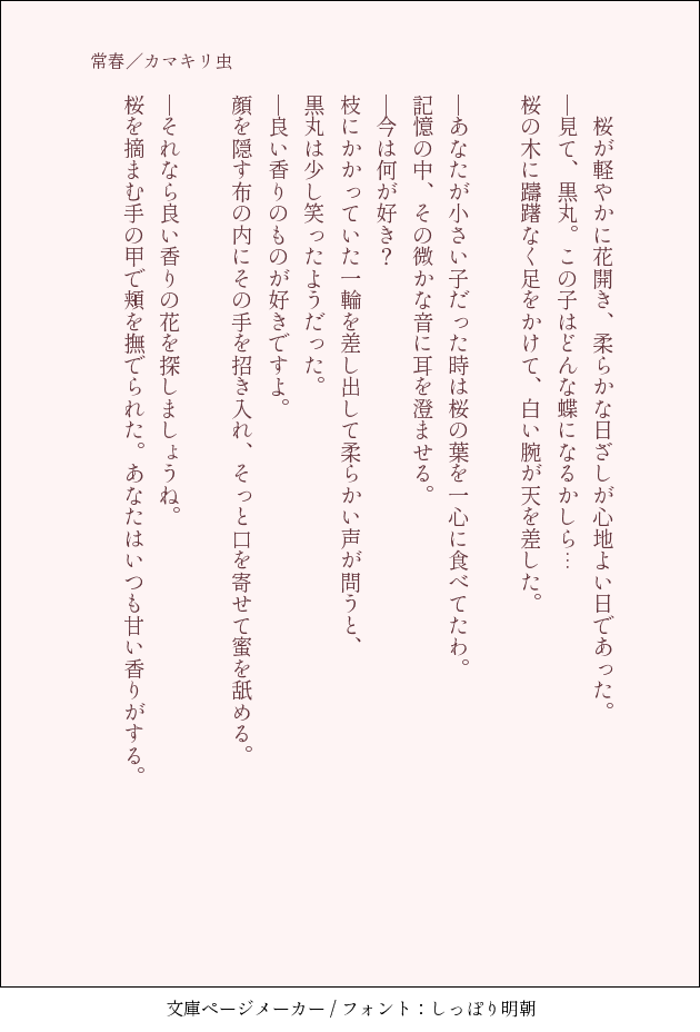 カマキリ☆quiet followPAST露子姫と黒丸少し怪しげな二人。 Tap to full screen (size:630x928).Repost is prohibited Let's send reactions! freqpopularsnackothersPayment processing Replies from the creator Follow creator you care about!☆quiet follow カマキリPAST結構前にかいたやつ…残されたふたり、晴明と道満の冬の話。 3 カマキリPASTオンリーおね泰の時にかいた晴博晴。まだ出会って日の浅いふたり、ちょっと修正したので再掲載。 8 カマキリDONE先日のオンリーで展示したものです。伊藤版のふたりの距離が近づきそうな話し。晴博ですが博が上手感あるよねと思ってます。 5 カマキリPAST晴明、道満、博雅の酒席。この三人もっと集まってくれ~~。Webオンリー用に書いやつでお品書きで使った画像も思い出で載せとく。 5 カマキリPAST博雅亡き後の話。歌といえばの鬼を登場させてみる。 3 カマキリPAST露子姫と黒丸少し怪しげな二人。