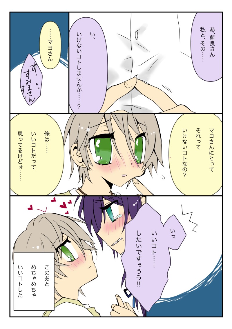ついったで話題に上がってた、いけないコトと言うかいいコトと言うかのやつ。付き合ってるマヨ藍で妄想した(°▽°)