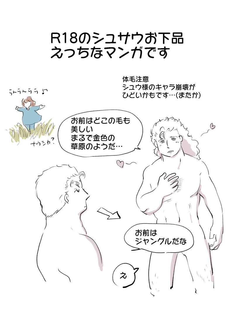 いつにも増してシュウ様が不憫です。18禁(ぬるいけど)ギャグお下品漫画…シュウ様のフェロモンは体毛から発せられている(嘘です) よくキャラのフィニッシュの叫びを想像するのですがシュウ様はどんなのかな…雄々しいのか…いわゆる汚あ◯ぎ声だったら大興奮です。サウちゃんも。今回の声は可愛いものを想像していました💕きゃあきゃあ💕作品の日付まちごうた26.OCTです。