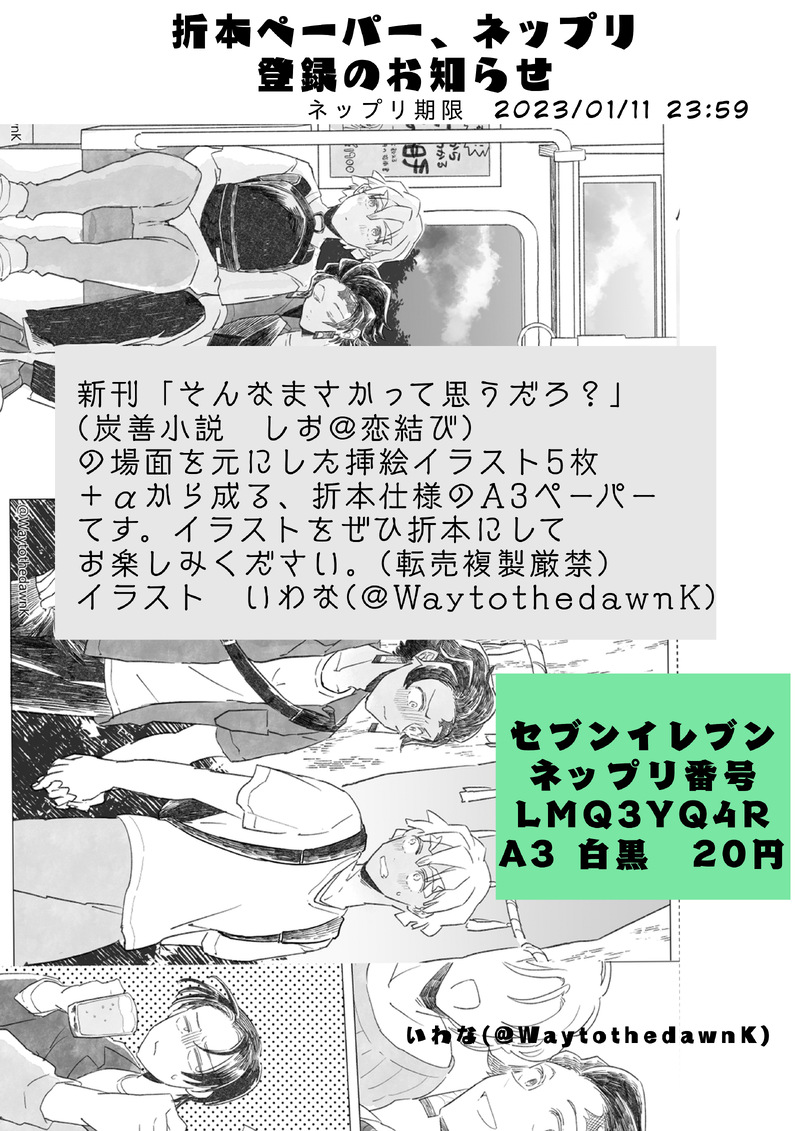 siotanzen☆quiet followINFO12/18新刊「そんなまさかって思うだろ?」挿絵(画 いわなさん)A3折本ペーパーネップリ再登録のお知らせ(11/11まで) #炭善 TanZen Tap to full screen (size:2894x4093).Repost is prohibited Let's send reactions! freqpopularsnackothersPayment processing Replies from the creator Follow creator you care about!☆quiet follow siotanzenINFO「ふたりきりで『話』をしよう」挿絵ペーパーネップリ登録延長のお知らせ siotanzenINFO6/25 新刊「ふたりきりで『話』をしよう」挿絵ペーパーネップリ登録延長のお知らせ siotanzenINFO12/18新刊「そんなまさかって思うだろ?」挿絵(画 いわなさん)A3折本ペーパーネップリ再登録のお知らせ(11/11まで) siotanzenINFO7/24の炭善オンリーの際の無配『無防備な男』をネップリ登録しました。紙で手元に置いてくださる方向けです。期間は8月5日23時59分までです。セブンイレブンのみ、本文は小冊子印刷(右とじ)でお願いします。 全年齢無自覚炭→善 siotanzenINFO新刊『死にたがりの嘘つき』の無配SSのネップリ番号のお知らせです。boothの購入画面からデータをDLできるようにおまけとしてつけているものと同一のものです(倉庫から発送分)紙で手元に置いておきたい方向けになります。内容は本編のネタバレを含みますので、本編読了後に読むことをおすすめします。セブンイレブンのネットプリントで印刷できます(5月6日23時59分まで) 2 related works 蜂目ちょき。PROGRESS逢引さほど吹き出しで隠れるので珍しく背景描いた記念に載せときます。 蜂目ちょき。PROGRESSいつもの1ページだけアップ〜とりあえずえちページはこれでおしまい。アヘ顔注意18歳超えてる人はyesでどうぞ 蜂目ちょき。PROGRESS3月の新刊の表紙のラフです。 蜂目ちょき。PROGRESS今日中で仕上がるかな?(無理) 蜂目ちょき。PROGRESS炭善ワンドロ無制限枠に向けて漫画を描いています。無事完成しますように。 螺子DOODLEにゃんこの日!ラフ 螺子DOODLEtkb祭りにちょっと便乗しつれいします…😇この後、あれはみんなの前でやらないでほしい、やるなら自分の前だけにしてほしいと⚡️にお願いして、なんの話だよ?って言われる🎴 蜂目ちょき。PROGRESS3月の新刊の表紙のラフです。 蜂目ちょき。PROGRESSおわんね recommended works 蜂目ちょき。DOODLE同じ学校の同じ学年という設定で書くと一度は消しゴムのおまじないの話描かないとすまないだよ…病気だよこんなん…もう1ページ頑張って書きます。 蜂目ちょき。PROGRESS雑な導入あと3ページ頑張りまーす 碧海(あおい)DOODLEぶきっちょの愛情表現※炭善 碧海(あおい)DONE月の光※キメ学時空転生パロあり※善逸がピアノ弾ける※転生ものですが二人とも前世をおぼえてません善逸が弾いているのはドビュッシーの月の光。漫画全体のイメージとしては米津さんの春雷です。 7 碧海(あおい)DONE※現代で鬼を狩っているパロ寝不足我妻~のかっこいい絵を描きたかったけれどただの甘党こじらせ我妻になってしまった…CP要素そこまでいれてないんですが、炭善の女が描いてるのでタグつけておきます 5 ナギナギSPOILERキメ学の妖怪ほほすすり、完全に炭善やったな∩^ω^∩超手癖で落書きした(笑)ネタバレになるかもだからいちおうポイピク〜 7010lipDOODLE 螺子DONEウェブオンリーにもでます!そちら用に色塗りました!なんか線が劣化してしまったんだけど。。 awagumiyReuse HalloweenOL善子の会社ハロパ結婚前提でお付き合い中の炭善♀です。交流目的のハ□パが企画され、衣装は総務のまえだが指導してくれる夏に間に合わなかったダイエットに成功した善子は、露出高めの仮装でご機嫌なところを🎴に咎められてしまって…えちちなことにしかならないツイートのやつ雑念(描きたいものが多い)がすごいからハロウィンフライング真面目で堅物と知られた後輩くんお酒弱かったの〜〜?