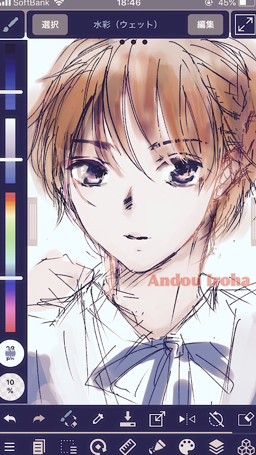昨日投稿した絵を、なぜかむきになってスマホのメディバンペイントでざかざか色塗りしました。