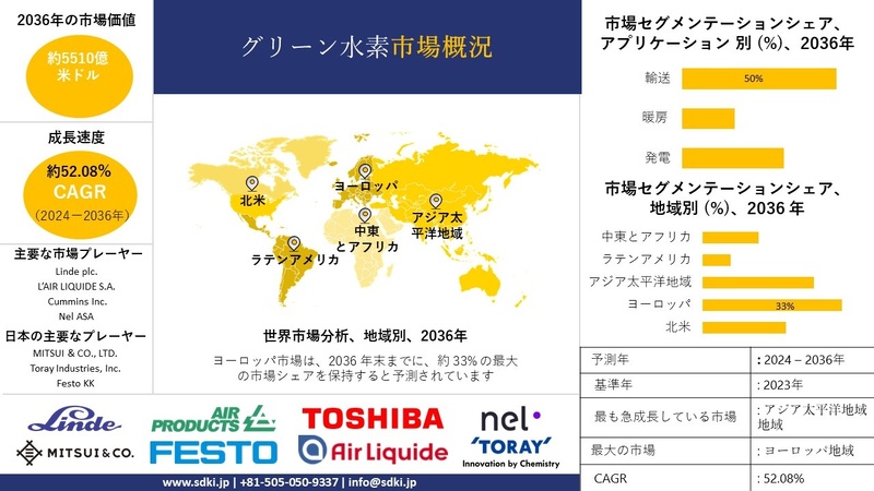世界のグリーン水素産業分析レポート、成長、機会、トップメーカー、サイズ、シェア、トレンド概要 - 2024-2036年予測