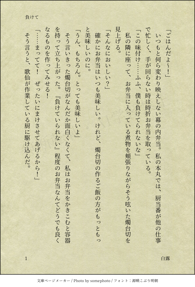 katana_saniwa_☆quiet followDOODLE燭さに/負けて審神者︎︎ ♀います。ロリなので注意。甘くもシリアスでもない。新作です。 #刀剣乱舞 Touken Ranbu #燭さに brightly show all(+2 images) Tap to full screen (size:630x928).Repost is prohibited Let's send reactions! freqpopularsnackothersPayment processing Replies from the creator Follow creator you care about!☆quiet follow katana_saniwa_PASTたろさに/望み審神者♀います。シリアス風味。刀剣破壊、死ネタ注意。過去にXにあげていたものの再掲です。 katana_saniwa_DOODLEくにちょぎ/花見BL注意。キャラ崩壊が心配。甘くもシリアスでもない。新作です。 2 katana_saniwa_DOODLE燭さに/花柄審神者︎︎ ♀います。甘くもシリアスでもない。新作です。 2 katana_saniwa_DOODLE燭さに/負けて審神者︎︎ ♀います。ロリなので注意。甘くもシリアスでもない。新作です。 3 katana_saniwa_DOODLE松さに/淡い赤審神者︎︎ ♀います。甘くもシリアスでもない。新作です。 katana_saniwa_DOODLE蜂さに/願い審神者︎︎ ♀います。甘くもシリアスでもない。新作です。 2 related works ややみPROGRESS燭さに 秋月蓮華DONEキスの日手がきで燭さに 北極星のなりそこないDOODLEシール交換でちょぎちょぎを交換した審神者ちゃんと燭台切光忠さんのちょぎちょぎを出汁にした燭さにSS。 2102 uraharanamiMAIKING部下の好意で以下略の続き見てないと全く話し分からないと思います。ちゃんと書いてるよというアピールです。へしさに♂メインで燭さに♂を添えて最後の方はメモなのでぶつ切り 3689 mol1515PASTお題箱リクエストより、へしさに前提・燭さにです。媚薬ネタあり、光忠さんがヤンデレ気味で思考がややぶっとんでます。審神者ちゃんに光忠さんに対する異性の愛情はありませんが、不可抗力で致しているのでR18です。ですので苦手な方はご注意ください。 5191 もみじまるDONE※刀さに※燭さに※審神者顔あり※男士お着替えあり刀さにイメージウェディングドレス10振り目燭さにメインルートなのに何も進んでない(白目) mol1515PAST今回で完結です。両想いのため、前作より甘めです。やはり推しcpは尊い……今回も性描写ありますので、苦手な方はご注意ください。いつもブクマやいいね、ありがとうございます‼ 執筆の活力になっていますので本当に有り難いことです🙇 7081 mol1515PASTお題をくれたぱーしゃちゃんと話していて、もし3pだったら……という話からできたお話です。人生初3pモノ。口淫含む性描写あり。媚薬・3Pという特殊設定ですので、苦手な人は閲覧注意⚠ 8115 ユミヲDOODLE燈のお相手は燭台切光忠です。鶴丸とかなり迷いました。