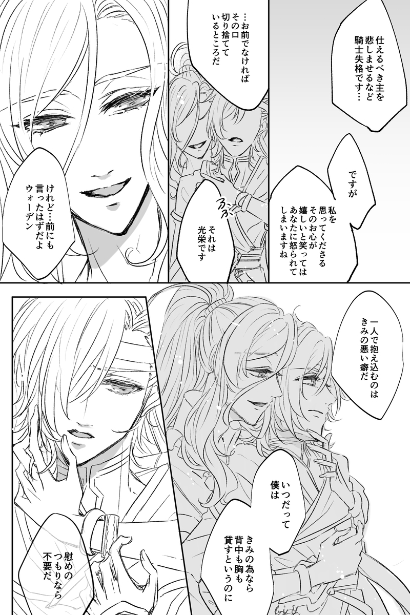 レイズ本編更新から約2週間経過しても情緒が戻らずペンすらほぼ握れず、放心状態の自分を救う為に距離感の近いバルナザの顔漫画描きました。