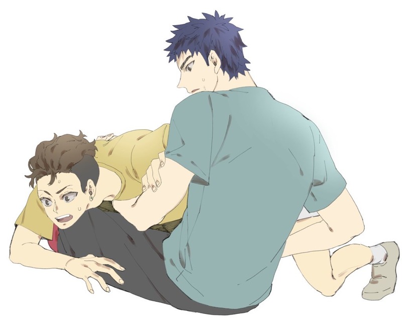 三井の膝の上に倒れ込んで、慌てて体を起こして心配してくれるリョータに愛情を感じてしまう三井の姿。
