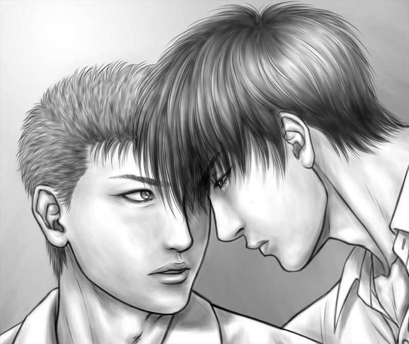 二人の人間を一緒に描く練習を時々しないと描き方を忘れていくので、コンスタントに続ける必要有。