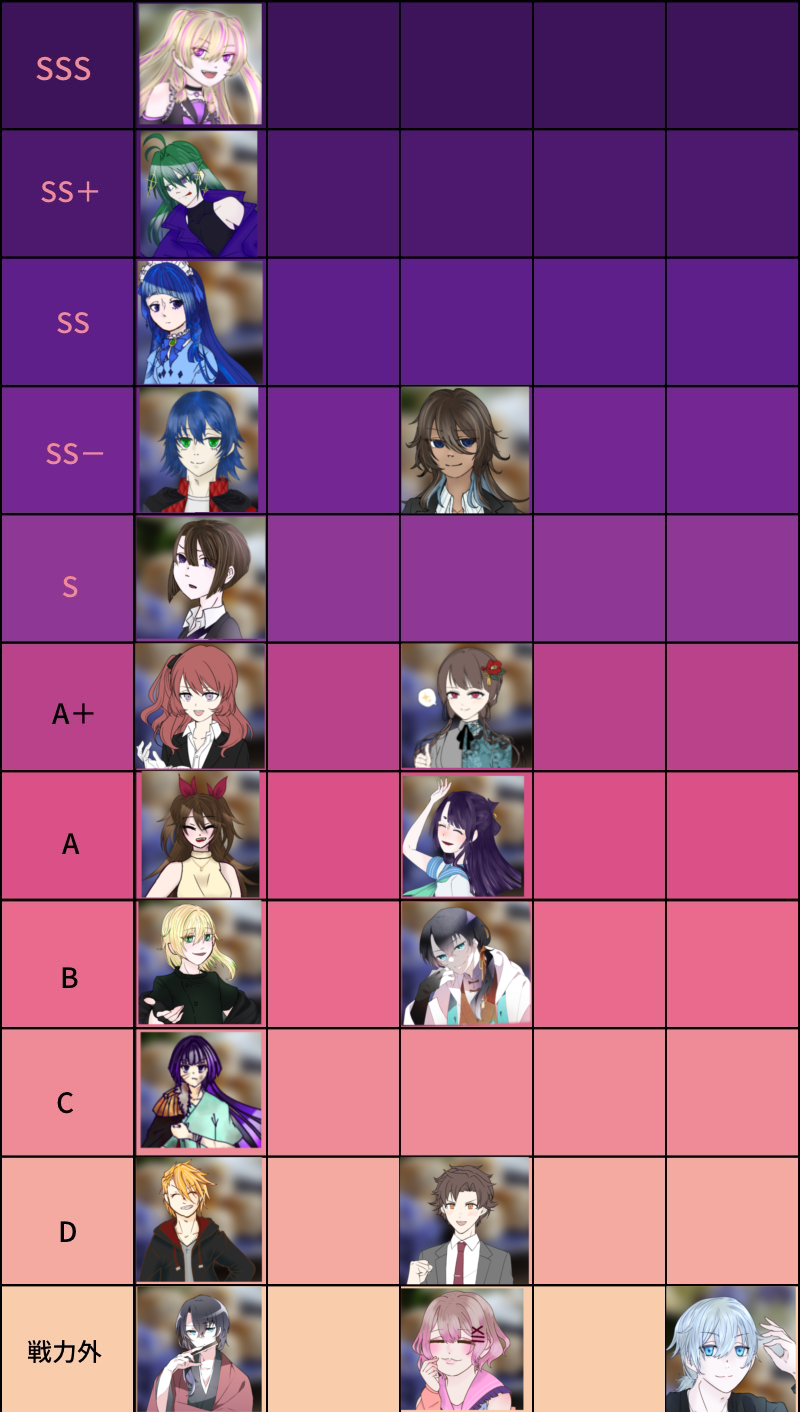 流れてきたうちの子tier表おもろそうなのでお借りして作りました!感謝!