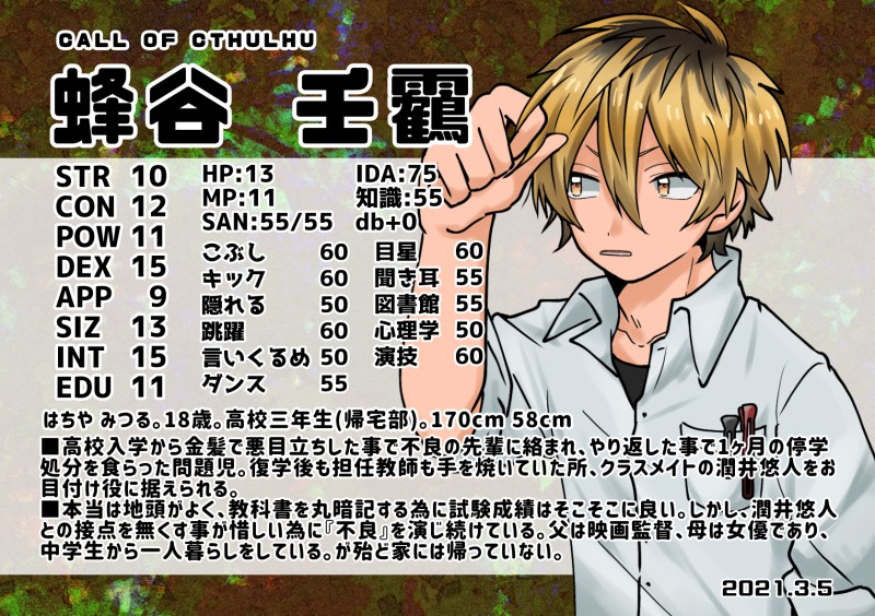 名前が蜜蜂もじりなのは、蜂って攻撃的で危ないイメージだけど、壬靏はあくまで『不良を演じている子』なので毒のない蜜蜂って感じ。金髪と黒髪なプリン頭も蜂っぽいし。可愛いね。🌸🐝