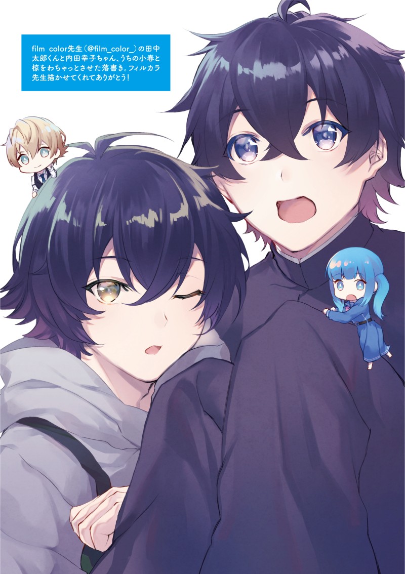 落書き本にてフィルカラ先生(@film_color_)のところのタローくん&サチコちゃん、うちの小春と椋を描かせていただきましたー!ありがとうございます!