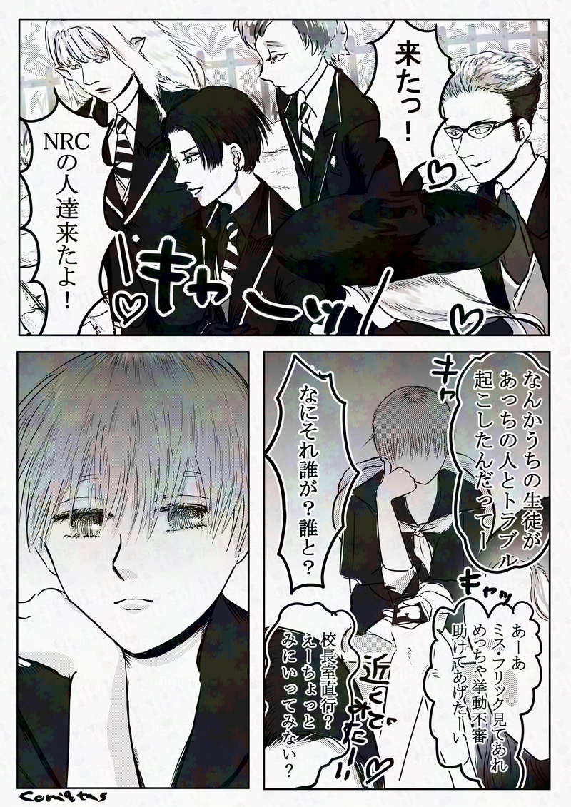 学生時代のクルーウェル先生と、魔法女子高に通う監督生ユウの出会いとクリスマスの夜の漫画です。突然始まって突然終わります、すべてが完全捏造設定のファンタジーとして読んでもらえたらと思います!