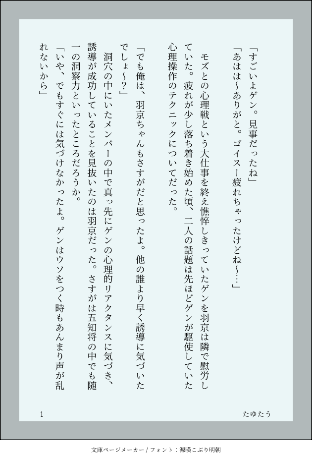 tayutau_nami☆quiet followDONE龍羽ワンライ/『駆け引き』※ゲが一番喋ってる。載せ忘れ再掲。 #龍羽 ryuukyo #3期_龍羽ワンドロライ show all(+5 images) Tap to full screen (size:630x928).Repost is prohibited Let's send reactions! freqpopularsnackothersPayment processing Replies from the creator Follow creator you care about!☆quiet follow tayutau_namiMAIKING今書いてる龍羽のお話。煮詰まっちゃったので士気をあげるためにイントロだけ放出します。自分への尻叩き…・かりそめの恋の続き、のつもり・船上で一年ぶりにセする計画を立てる龍羽の話・序盤に行為の描写はないけどR18 2591 tayutau_namiDOODLE秋の龍羽祭り2024 ss 5 tayutau_namiDOODLE羽京誕生日にあげたやつ。芸能人パロ龍羽。 6 tayutau_namiDONE #春の龍羽まつり2024 に投稿したものをまとめました。どちらも全年齢SS。二本目だけモブ視点注意。 8 tayutau_namiDOODLE龍水が月行きの切符を譲ったはなしのつづき前回の話の六年後ひょんなことから旅行先で出会った二人が一緒に過ごす話。もちろん付き合ってない。R表現はないけど、どんな設定でも受け入れてもらえる方向けです。まだ続きます。 15 tayutau_namiDOODLE月行きの切符をスタンリーに譲った龍を、一晩だけ羽が体で慰める話龍→羽の片思い感が強いけど龍羽。羽が拗らせまくってる。龍が少しかわいそう。途中から思いっきり致してるのでR18※攻めフェラ、焦らしプレイのような表現が苦手な方は回れ右でお願いします。(y/n) 13 related works PENNALIADOODLE美味しい、美味しい涙。 sewatanPAST龍羽のR18作品雑にまとめ※R18です。18歳未満の閲覧はご遠慮ください 5 sewatanPAST龍羽と出られない部屋。R18のものまとめ※18歳未満の閲覧はご遠慮ください 8 水滴(kimidori_14)DONE【龍羽・🏹の女装・すけべ注意】#絶対に被ってはいけない羽の女装企画にて袴がかぶったので罰ゲーム絵です。 yui_5108DOODLE言動隠せても目から愛溢れちゃう羽ちゃんいいなと思って (春志)ハルシヨンDOODLEオメガバかもしれない(だんだん発情期が被ってくるとかわいいねと思って…)pass 羽さんの誕生日数字8桁 2 凛子@amanatsu0202DONE学パロ龍羽/マロリク 5 PENNALIADOODLE🐶🐰💕 Shunkasu_081CAN’T MAKE無自覚スリスリ🐉🏹͙💞💕 recommended works 水滴(kimidori_14)DONEまとめ2。龍羽そのほか(龍羽以外のカプはいません) 37 tsuzuri0505DONEDay21_Cookingささろ #30DaysCPChallenge 3 水滴(kimidori_14)DOODLEまとめ5・龍羽アニメ3期ワンドロ企画にて描いたものまとめ。第10回「科学学園」は忙しくてリアルタイムで参加できなかったのでまとめ用に後日書き下ろしました。主線の色が違ったり絵のバランスが変なところなどありますが限られた時間の中で唸りながら描いた証として修正などはせずそのまま載せておこうと思います。 11 SuzukichiQDONE6/25潮騒の無配冊子です。新刊「プラットフォーム・ゲートウェイ」の内容を一部含みますが知らなくても大丈夫です。 4576 SuzukichiQDONE前に書いてたSSの5本目、これで最後です。愛ってなに?をテーマにしていた。 14 SuzukichiQPAST 2305 凛子@amanatsu0202DONE3期20話のあの距離感を咀嚼できない 6 マル@龍羽の民DOODLE復興政府羽京ファミリー妄想。⚠️本誌読み切り後の世界なので未読の人は自衛お願いします。⚠️本編に出てこない全く関係ないキャラがでてます。⚠️羽京を描きたいだけの自己満です。 3 凛子@amanatsu0202DONE謹賀新年龍羽 11