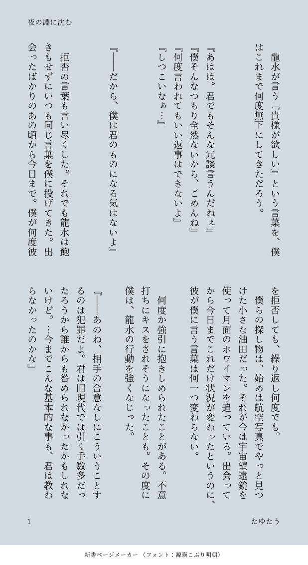 tayutau_nami☆quiet followDOODLE月行きの切符をスタンリーに譲った龍を、一晩だけ羽が体で慰める話龍→羽の片思い感が強いけど龍羽。羽が拗らせまくってる。龍が少しかわいそう。途中から思いっきり致してるのでR18※攻めフェラ、焦らしプレイのような表現が苦手な方は回れ右でお願いします。(y/n) #龍羽 ryuukyo show hide show all(+12 images) Tap to full screen (size:618x1132).Repost is prohibited Let's send reactions! freqpopularsnackothersPayment processing Replies from the creator Follow creator you care about!☆quiet follow tayutau_namiMAIKING今書いてる龍羽のお話。煮詰まっちゃったので士気をあげるためにイントロだけ放出します。自分への尻叩き…・かりそめの恋の続き、のつもり・船上で一年ぶりにセする計画を立てる龍羽の話・序盤に行為の描写はないけどR18 2591 tayutau_namiDOODLE秋の龍羽祭り2024 ss 5 tayutau_namiDOODLE羽京誕生日にあげたやつ。芸能人パロ龍羽。 6 tayutau_namiDONE #春の龍羽まつり2024 に投稿したものをまとめました。どちらも全年齢SS。二本目だけモブ視点注意。 8 tayutau_namiDOODLE龍水が月行きの切符を譲ったはなしのつづき前回の話の六年後ひょんなことから旅行先で出会った二人が一緒に過ごす話。もちろん付き合ってない。R表現はないけど、どんな設定でも受け入れてもらえる方向けです。まだ続きます。 15 tayutau_namiDOODLE月行きの切符をスタンリーに譲った龍を、一晩だけ羽が体で慰める話龍→羽の片思い感が強いけど龍羽。羽が拗らせまくってる。龍が少しかわいそう。途中から思いっきり致してるのでR18※攻めフェラ、焦らしプレイのような表現が苦手な方は回れ右でお願いします。(y/n) 13 related works sewatanPAST龍羽と出られない部屋。R18のものまとめ※18歳未満の閲覧はご遠慮ください 8 PENNALIADOODLE美味しい、美味しい涙。 yui_5108DOODLE言動隠せても目から愛溢れちゃう羽ちゃんいいなと思って sewatanPAST龍羽のR18作品雑にまとめ※R18です。18歳未満の閲覧はご遠慮ください 5 PENNALIADOODLE🐶🐰💕 (春志)ハルシヨンDOODLEオメガバかもしれない(だんだん発情期が被ってくるとかわいいねと思って…)pass 羽さんの誕生日数字8桁 2 凛子@amanatsu0202DONE学パロ龍羽/マロリク 5 水滴(kimidori_14)DONE【龍羽・🏹の女装・すけべ注意】#絶対に被ってはいけない羽の女装企画にて袴がかぶったので罰ゲーム絵です。 Shunkasu_081CAN’T MAKE無自覚スリスリ🐉🏹͙💞💕