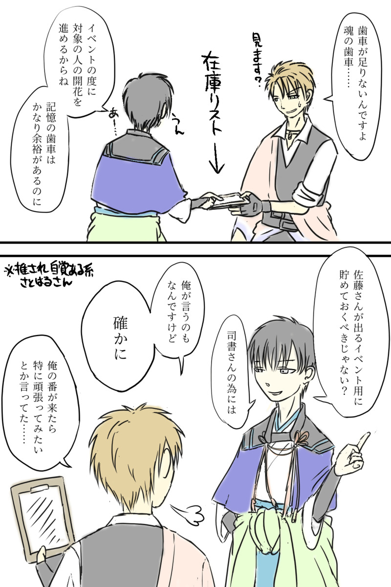 にしき☆quiet followDOODLEこういうランキングイベントの参加は文アルが初めてなので! 力の尽くし方が分からなくて! ゴシック中編まで印章は確保してきたけど、もろもろ控えてどの程度になるかも確かめておかないとだ…… #文アル BunAru ##うちの事情 Tap to full screen (size:1000x1500).Repost is prohibited Let's send reactions! freqpopularsnackothersPayment processing Replies from the creator Follow creator you care about!☆quiet follow にしきINFO引っ越しとは違うんですが、今後のまとめはくるっぷに投稿予定です。https://crepu.net/user/suna_n/image にしきDOODLEタイッツー垂れ流しのほぼ自主練らくがき。腐向けはナシ、誕おめ記念込み、女装(ドレス)ありスマホブラウザ版だと閲覧や編集ができない(アイコンなどにURLがついていない)という謎不具合が不安だったけど、一応対応はするみたいでひとまず安堵。移転も考えてたものの、ここ以上の代替案がない状況。良かった… 13 にしきDOODLE縁日の秋春 3 にしきDOODLE「誕生日プレゼントは、どんなものがいいですか?」露司書 にしきDOODLEショート動画で見たダブケが気になった結果で踊らされるぶんごーさんたち。dabke:アラブ地域の踊り。初見時の印象は「おじさんばっかのラインダンス」。基本みんな手を繋いで足を踏み鳴らす。 2 にしきCAN’T MAKEピンときて書き始めるが、実際にあれこれ描写するうち何が書きたいのか分からなくなって、オチだけあるのに経過が謎になって、話が収束しない…… 224 related works ちおんDOODLEアイコンのしげじ 篁由月MAIKING直木せんせーお誕生日おめでとうございます🎁雑ですみません…ケーキに喜ぶ直木さんを描きたかった… 落書きマンDONE _girasole_oDOODLE制服すき ちおんDOODLEアイコン用のみよみよ ちみこMAIKING劇2OP(ごまかしまくり) henriDOODLE執念で2日でお迎えした背景は221Bですふふふ ちおんDOODLEアイコンのしめーくん 甘咲(かんざき)@審神者司書監督DOODLE司荷。こう、一枚にたくさん書くのをやりたかった recommended works ななめDOODLE去年、テンプレをお借りして描いたものです。 ちゃなべDOODLE誕生日のとかまとめその2#文アル#とうらぶ#あんスタ#めいこい#ヒプマイ 20 日 生DOODLE現実逃避その2 和音。MOURNING知人とTwitter用のアイコンとして使っていたもの kokurowDOODLE弊館の愉快なぶんごーたちのあれこれ 6 jikuyarouDOODLE🐸 _girasole_oDOODLE夏祭りしゅせがかわいかった☺☺ w__DONEみんなかわいいっっ 2 chabasiranDONE普段はまっっったく嫉妬とか独占欲が無いけど、本気の人間が出てきたり、自分達の害になりそうな事になるとちゃんと圧をかける抜け目ないぼっさん