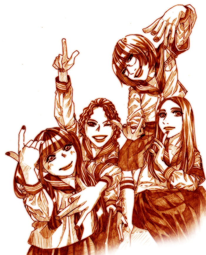 新しい学校のリーダーズを中心にイラストを描いています。