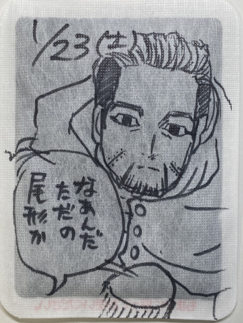 カイロらくがき、ゴールデンカムイの、なぁんだ、ただの尾形か〜です。