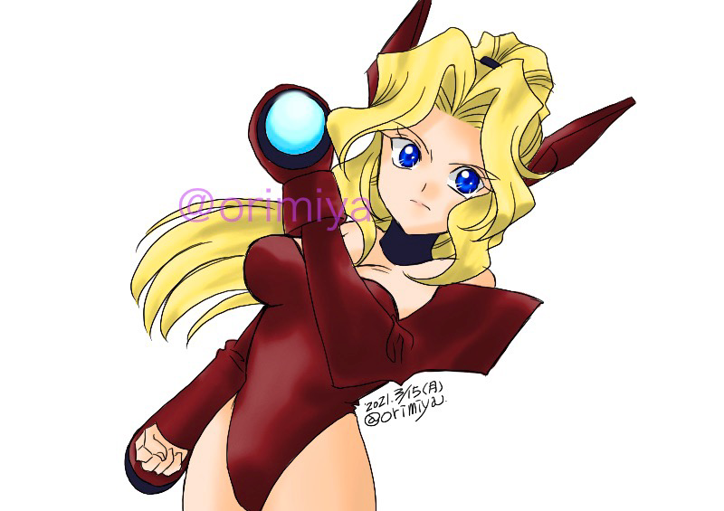 「サイキックフォース」ソニア、4Pカラー…なんだけど、服を黒にしたら何だか画面が真っ黒になったので、赤に変えた…。相変わらずのソニアさんです。背景なしで。