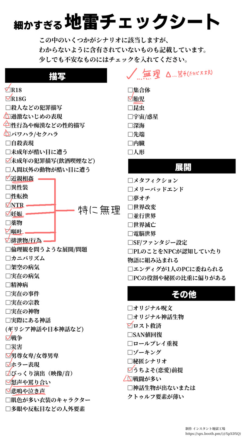 tane01☆quiet followMEMO自分用地雷チェックシート show all(+1 images) Tap to full screen (size:1138x2048).Repost is prohibited Let's send reactions! freqpopularsnackothersPayment processing Replies from the creator Follow creator you care about!☆quiet follow tane01DOODLEおなそら げんみ✖PW 太陽 tane01DOODLE犀片、げんみ✖pw:さいへん 7 tane01DOODLEせいテロげんみ❌pw篤学者 2 tane01DOODLE誰ロクげんみ❌pw 2 tane01DOODLE静テロげんみ✖rkgk、PW➔篤学者 tane01DOODLE星の吸血鬼にさよならを一応げんみ✖大ラフ。 recommended works 戀 々MAIKINGぎゆさねご都合血👹術ぷらべからの移動です。移動に伴いあちらは削除しました。当時ぷらべに沢山のリアクションありがとうございました。ネームも立てず無計画に描き始めたので途中まで気が向いたら進めたいけど飽きたら終わります。予定は未定です。ぎさと宇煉が推しなので、両方描きたいなと思って両方セしないと出られない部屋に閉じ込めました。メインはぎさになる予定でした(でした) 7 Uh______hUSPOILER一夜限りの相棒げんみ❌二陣三陣の曲パロとテンプレで遊んだやつ 4 Oc_OUDOODLE創作 nsfw 同棲時空サイズも揃ってるからそもそも3人で割る必要はない イクト🍼DONE メノちゃSPOILER静テロげんみ×🔑あ 59 genhone8DONE四鬼罪で使っている沢川理央の戦闘差分+表情差分ができました 4 あーにゃんDOODLECOC「レイジー」KP:MJさんPL:あーにゃん両生還にて終了しました。あとまつ継続で行ってきました!なに、これ…??しんどい…しんどかった… 4646__DolphinSPOILERFRaTRICiDE げんみ❌️HO1なら🙆♀️りょちょのらくがきわよ〜〜〜〜〜〜 帕尔佩罗DOODLE教勘(紧急运输x公路骑士)