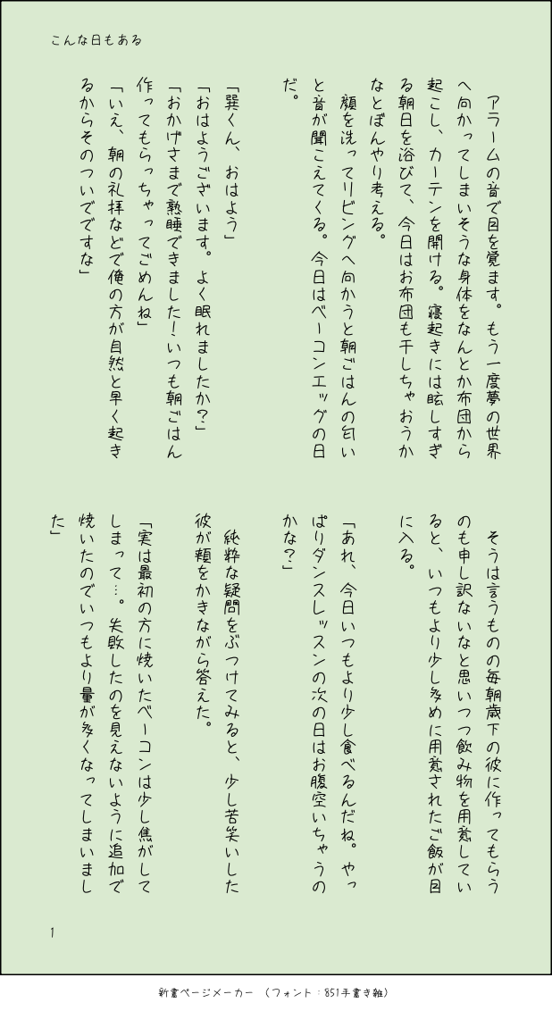 アクアマリン☆quiet followDONE⚠️巽夢ネームレス、同棲、歳上の設定です!巽が寝ぼけてぽやぽやというかミスするところが見たかったのでかきました……。(こっちは画像版) show all(+1 images) Tap to full screen (size:618x1132).Repost is prohibited Let's send reactions! freqpopularsnackothersPayment processing Replies from the creator Follow creator you care about!☆quiet follow アクアマリンDONE新衣装とキャンペーンボイスに狂わされて生まれました。半分ほどボイスネタバレ有りです。巽不正解ボイスを確認後に読むの推奨です。いつも通り♡も濁点もあります。ゆるい目隠し&拘束もありますが風味付け程度です。よろしくお願いします。お名前変換できるのは支部にあげてあります。パスは巽の誕生日 6551 アクアマリンDONE「怖い夢見ちゃって駄々っ子になった巽との問答で膀胱の危機を迎える」という妄言から生まれました。よろしくお願いします。こっちはネームレス版です。お名前変換版は支部にあります。 2169 アクアマリンDONEもちマスピローに嫉妬する巽のお話です。ぬいぐるみには嫉妬しないのに、もちマスには嫉妬して欲しいという謎の感情から生まれました。よろしくお願いします。 1825 アクアマリンDONEバニーの日ということで、バニー服を着て巽と致したいがために書きました。多分かなりアホエロです。飲酒しているので成人済みです。呼び方は君↔︎巽くん固定です。パスは巽誕です。⚠️少しでも含まれる要素は以下の通りです・飲酒・コスプレえっち(逆逆バニー)・乳首絆創膏・69・両者の♡、濁点喘ぎ 8144 アクアマリンDONEESkeyのワンドロお題「雨の日の風早巽」をワンライで参加させて頂きました!巽夢 ネームレスです。全年齢です。巽くん呼び固定です。小説版もアップしてますのでお好きな方でどうぞ。 3 アクアマリンDONEESkeyのワンドロお題「雨の日の風早巽」をワンライで参加させて頂きました!巽夢 ネームレスです。全年齢です。いつも通り付き合ってるし一緒に住んでますね(?)巽くん呼び固定です。画像版もアップしますのでお好きな方でどうぞ。 1455