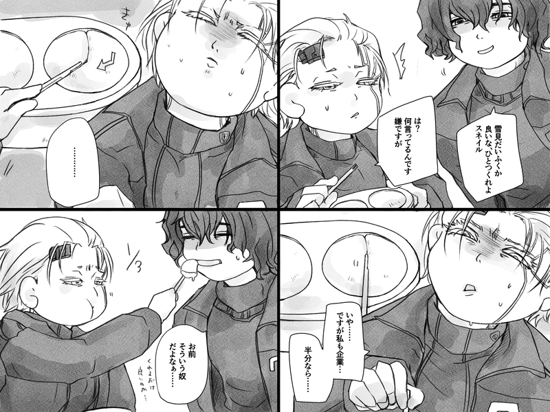 斉藤思按☆quiet followTRAINING弊社フロスネは雪見だいふくを半分こするのだろうかというネタでゆるい4コマ。半分こどころではない。 #フロスネ Freud/Snail #AC6 Tap to full screen (size:2048x1536).Repost is prohibited Let's send reactions! freqpopularsnackothersPayment processing Replies from the creator Follow creator you care about!☆quiet follow 斉藤思按DONEガタケにて発行した既刊「恋路を駆けるが如く、故に至って純粋。」の前半部分を前回のイベント限定で公開してたのですがとりあえずまた公開しておきます。紙の方は現在完売しております。ありがとうございます… 21 斉藤思按DONE前回のフロスネWebオンリー開催記念アンソロジー「Beyond the two light」にて寄稿させて頂いた弊社フロスネの漫画です。Webでの公開可となりましたので展示しております。以前ツイッターに流していたフロ吸いをする限界連勤閣下のゆるいらくがきが元ネタです。ほんとアンソロがとても良すぎるのでもしまだお持ちでない方はぜひ他の方の作品もたっぷり収録された本の方を…ほんと良いので… 9 斉藤思按TRAININGWebオンリーのカウントダウン企画で描かせて頂いたもののまとめです。こういう企画で全部描けたの初めてです。やったぜ。 3 斉藤思按DOODLEツイッターに垂れ流したらくがきまとめです。最新のまででちょっと少なめ。 10 斉藤思按DOODLEデスクの上ですけべに励んでいたフロスネの所にうっかり報告に入ってきてしまったモブ視点のらくがき漫画。すけべでそれどころじゃなくなってる閣下だけ気付いてない。 斉藤思按DOODLEとあるフォロワーさんのつぶやきから巨大ぷにもちフスが自然界の災害のごとく無邪気に暴れるのが見たいという謎のヘキを爆発させて衝動で描いたやつです。また何かの折に増えるかもしれない。 3 related works masato_zattaDOODLEナイルと五花海こっちももう確定大豊娘娘の流行りに乗りたかったのを抜きにしても色んな意味で癖が出過ぎてるその為のぽいぴくなのでヨシとする安定の湿度 2 masato_zattaDOODLEペイターとホーキンスホーキンスさんとはもっとお近づきになりたかったんですが…???どうして…ペイター君はまぁ多分部下にいたら可愛いねとも思ってしまうそれはそれとしてコイツ…ってなる身長イメージ等は全員描けたら改めて数字も出したい 2 ShierinTRAINING幻覚スネイル(司令部の姿?ヴェスパー部隊正装?)できた!表情が思ったより穏やかめになっちゃった。次は全身でポーズ付けて描く。 VX_FictifMEMOア社ヴェスパー部隊長就任にかかる通過儀礼に関する覚え書(R18) タイトルの通り覚え書程度のメモです。オキラス、フロスネ、ペイホー、モブスウィへの言及あるのでお気をつけください。自衛のほどよろしくお願い致します。鍵→成人ですか yes / no 787 ShierinDOODLE2週目が終わって3週目始めました!AC6の戦友ラスティについて考えてました。ラスティについて考えてるときはサウダージになっちゃう(一つずつ分かんなくなる男)。 2 ぽみとMEMOAC6 賽は投げられたルートクリア感想これでもう何も気にせずネットで情報あさりまくれるぞー!絵も描きたいし、人様のトークも聞きたい💨 2 ShierinTRAINING【幻覚】フロイトとラスティの外見イメージというか、こういう方向でいこうかなと。全キャラ並べてキャラデザしないと、被った被らないが分からないですけどね。そもそもSTV画稿自体が『誰が誰と明言されていない』というトリック有るので。 2 斉藤思按TRAINING数多の実験体の犠牲で作られた閣下の概念絵。なんか趣味に走りすぎた上に普通にグロめになったので注意 2 LabanS_LabDONEハロウィン?なので肌色多し仮装ウォルター※髭描くの忘れたので追加PASS:NH√本の書き下ろしの最後の言葉 2 recommended works 後行ジクDOODLE 4 indK9PAST亮懿补档③接上,坑了的本图 5 masato_zattaDOODLEとりあえず1巡目終わって推し3人他2人は過去のレイヴン描いてみたの文脈でチャティは擬人化の文脈で描いてるラスティは徹頭徹尾イケメンだったしウォルターはずっとやさしかったしチャティは可愛すぎて何かが壊れた2周目進めながら他のメンツもちまちま描いていきたい 3 zairuDONEAC6らくがきまとめ 5 masato_zattaDOODLEリングフレディとドルマヤンここは全年齢アカウントなので精一杯配慮した表現はしてるよ… 2 斉藤思按TRAININGフロイトくんはスネイルくんの事簡単に思い通りにならなくて飽きない唯一無二のお気に入りのACのパーツのように思ってるのだろう(貶める意図ではなく本人の感覚からしたら最上級の特別なんだと伝わってほしい)という妄想で出した漫画。 masato_zattaDOODLEメテちゃんとカーラヴェスパーもこれで完走!!カーラのピアスはあの子とアレとアレです。あとブランチと独立傭兵組とラミーとだなもさん……。(とエアちゃと621)半分くらいはイメージ沸いてるしここまで来たら完走したいね……。 2 スマイルDONE看守長のふわふわ…※囚隠2枚です 2 CHOI_BUN_SADOODLEポッキーキスがしたかったフロイト 2