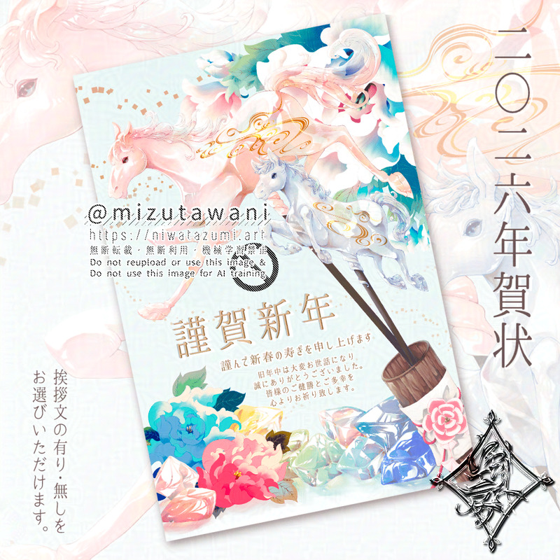 みずたわに☆quiet followMENU【期間限定販売:〜2026年1月3日(土)まで】2026年のオリジナルデザイン年賀状を販売しております!よろしくお願いいたします😊▽販売先▽BASE:https://shop.niwatazumi.artminne:https://minne.com/@mizutawaniCreema:https://www.creema.jp/c/niwatazumi #オリジナル original #年賀状 yearbook #ハンドメイド handmade #オリジナルグッズ originalGoods #販売中 nowOnSale #オンラインショップ #ネットショップ #午年 #馬 Tap to full screen (size:999x999).Repost is prohibited みずたわにMENU【期間限定販売:〜2026年1月3日(土)まで】2026年のオリジナルデザイン年賀状を販売しております!よろしくお願いいたします😊▽販売先▽BASE:https://shop.niwatazumi.artminne:https://minne.com/@mizutawaniCreema:https://www.creema.jp/c/niwatazumi みずたわにINFOご無沙汰しておりました。11月はイレギュラーな事が起こりバタバタしておりまして、ネットの方に顔を出せずにすみません。落ち着いたので今月からはまたちょこちょこ投稿させていただきます。画像は載せる余裕がなかった販売用年賀状のwip。(販売ページは後日ご紹介します) みずたわにDONEハッピーハロウィン! 2 みずたわにMENUFANBOXプリントで『ハロウィン2025』の販売をしております。L判/2L判/A4の3サイズになります。販売期間:~2025年11月29日(土)23:59迄会員登録不要、日本国内の対象コンビニでどなたでも購入・印刷出来ます。どうぞよろしくお願いいたします(*ᴗˬᴗ)⁾⁾FANBOXプリント→https://mizutawani.fanbox.cc/print/contents 2 みずたわにPROGRESSこのところイラストの進捗も上げてなかったのでハロウィン絵のwip。今のご時世、絵の途中経過を投稿するのちょっと迷うのよね……。 みずたわにPROGRESS創作漫画の方もちゃんと進めてるよアピール。完成は……ら、来年中には……(駄目人間) related works 福寿家の過去絵倉庫PAST2014/3/4にpixivへ投稿した年賀絵です。投稿当時のコメント↓ものすごく遅くなった……(>< ;)久々のin。今年の年賀状に使ったイラストです。 むしとりねこDONE2024~2025年のオリジナルイラストまとめ/全てAffinity使用年賀状デザインのはデータ無料配布しています。興味ある方いましたら↓こちらからダウンロードしてご利用ください。塗り絵用線画も一緒に配布しています。https://x.gd/U4263https://x.gd/qo9HLハロウィンイラストを背景に使った動画。https://youtu.be/r6viVa3S8_M 2 みずたわにMENU【期間限定販売:〜2026年1月3日(土)まで】2026年のオリジナルデザイン年賀状を販売しております!よろしくお願いいたします😊▽販売先▽BASE:https://shop.niwatazumi.artminne:https://minne.com/@mizutawaniCreema:https://www.creema.jp/c/niwatazumi recommended works はなまるFXDONE雨が降ってる時に気を付けないとなのが車からの水はね。。(*´Д`)私の所は都会ではないので、車と人の距離が近いので特に気を付けないと悲惨なことに・・・傘で上手に防げた時は何故か「ざまみろ~」な気持ちになっちゃいます(笑)でも私自身も車を運転するので気を付けないとですね~('ω') Callo🌙DONE天満月に森とうたう PriucesshanageDONE【アルフィーALFEEさん懐かしのラーメン屋さんに行って変わらないものを発見してほっこりする漫画(マンガ)】 6 おおしまやすゆきPROGRESS進捗。 PriucesshanageDONE【あり得ない】『プチ不幸で有名な桜井賢氏がなんとくじ引きで当たりを引く事件が発生!』#alfee #アルフィー #くじ #桜井賢 #坂崎幸之助 #高見沢俊彦 #タカミメロン #漫画 #マンガ #イラスト #ブレない運気 #仲良し #かわいい #当たり 5 だしまきDOODLEゲームでもしましょ 咲DONE秋の鬼さん達。 Sho-sakaDONE黒人の冬祭 ‐ ハピーホリデー・良いと安全なお年を ^_^ 2 ムラサキゲジゲジDONEわがままミー様##ムラサキゲジゲジのUMA#オリキャラ #創作 #お絵描き #イラスト #oc #originalcharacter
