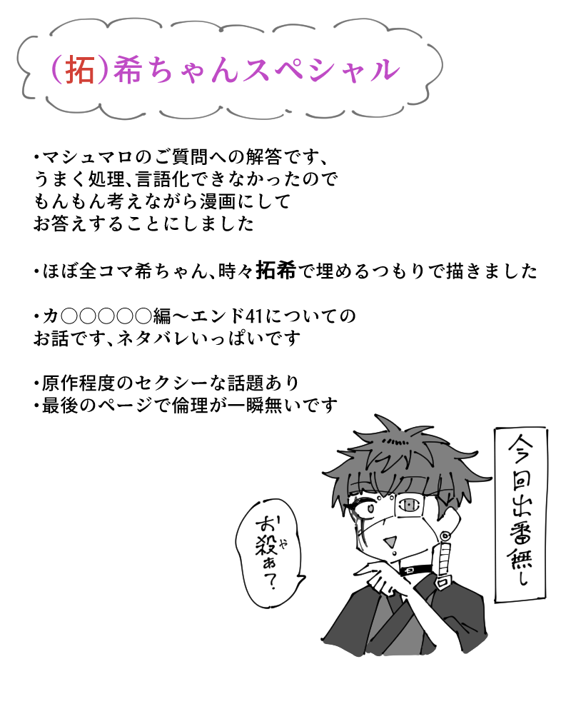 matukumo☆quiet followSPOILERンドラ カ〇〇〇〇〇編~エンド41のネタバレ希ちゃん多めかつ拓希ちゃんです内容は蜘蛛に届いたマシュマロの返信になっています!→https://x.com/matukumo/status/1966095286964768935カ編エンド41の拓希について、語っている漫画です show all(+4 images) Tap to full screen (size:800x1000).Repost is prohibited Let's send reactions! freqpopularsnackothersPayment processing Replies from the creator Follow creator you care about!☆quiet follow matukumoDOODLE拓歪 の 子供捏造 です!!ワァ拓歪が結婚してたり親になったりしている 全て中途半端に妄想名前は記載ないですがオリキャラ要素ありです好感度会話で出る面影家の話にちょっと触れてますどこのルートでもないですが2周目クリア以降をイメージしてます絶対ここに至るまでの過程でめちゃくちゃ深い紆余曲折が二人の間にあったと思うんですが(例:面影君が親になりたがらない等)一旦置いといてます 4 matukumoDOODLEンドラ 拓🌊と歪👁R-18Gかもしれない 血は出てないですがエグいと思います文字通り「半身」と「半身」二人が仲良しなので、くっつけちゃいました 物理的に 直接正面から見て左側が拓海君で右側が歪君原理が分からんけど多分あの世界の技術ならイケます多分倫理観ないです(当然) matukumoDONE性癖パネルトラップで「死に顔」があったためこちらに見れるものをのせてます原作程度の流×描写があります matukumoSPOILERンドラ ちょっと様子がおかしい面影(?)君を妄想しました例のsuminoみたいに…っていう類の妄想ですコテコテの女口調とキャラ崩壊と原作程度のエグさを含みます2枚目ちょっとグロいかも 流血はないです※ネタバレあり※女王〇〇の話をします、おおよそS〇編当たりのネタバレですもしくは血〇〇〇編を通っていれば大体分かるかも… 4 matukumoSPOILERンドラ R-18 拓歪🌊👁血〇〇〇編エンド71軸の要素・ネタバレありお先に謝りますが某スチルに邪な劣情を抱いてしまいっ すみませんでした!初夜を迎えるもとんでもないことになる話…なんですがあれこれと描いてるうちになかなか手が付けられず!でもせっかく描いたのでもったいなし!の精神で下書き状態ながらも上げようと思いましたアヘの話をしていますがひとつ前ふたつ前ほどのアへは出ません 10 matukumoCAN’T MAKEンドラ R-18 くすぐりが性癖なのでこうなりました澄野君が触手にくすぐられたり入れられたりします三枚目で完全に発狂・爆笑・アヘ顔で絶頂しますあと一枚目、ただの注意書きなのに、若干面影君との絡みを示唆する絵があります 3 recommended works 倭寇。DOODLEタワハノ好きだ......とりあえず今の所個人エンド見た3人娯楽施設のネタバレ有りです!#TOWER_of_HANOI 3 倭寇。DOODLE娯楽施設ネタです(※台詞バレ有り) 3 すあま🦥TRAINING中太のセッ……こういうのどうやってお勉強すべきなの…(困惑) mizuteppoDOODLE「TOWER of ET ジョルジュ編」の設定資料的な何かです。読後の閲覧をお勧めします。passは第●の塔3階でのジョルジュの正答率(半角数字二桁) 2 そうかDOODLE※ネタバレらしいネタバレはないけどゲーム内会話要素有ハマりました、ナナシ好きです。情緒おかしくなる。 3 北野さんDOODLE♨️の日って事っ再放送玄実です!!!!!! 5 tamago____fwfwSPOILER※T2「互いの譲れぬもののために」 どりーDONE🐾×🤍(♀) ※女体化注意相互さんのパレスの一幕(のつもり)第3弾 3 Elise_RxGDOODLE【12月分】シアまとめツイにうpした絵の透かし無しです 3