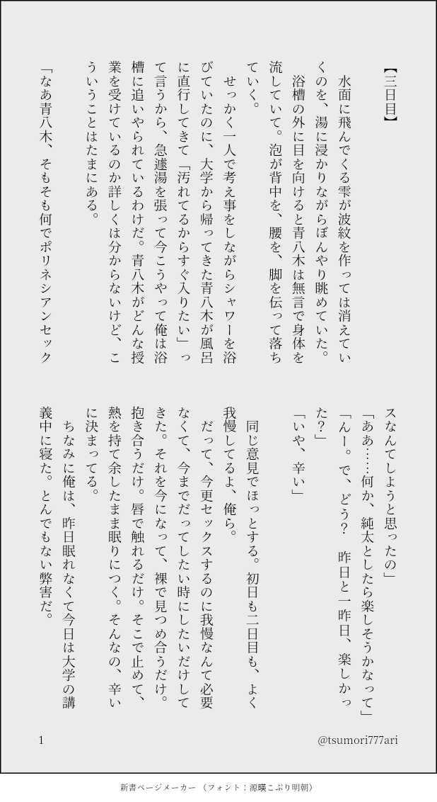 つもり☆quiet followDOODLEポリネシアンセックス3日目。青手。大学生で同棲しているふたり。 show all(+5 images) Tap to full screen (size:618x1132).Repost is prohibited Let's send reactions! freqpopularsnackothersPayment processing Replies from the creator Follow creator you care about!☆quiet follow つもりDOODLE黒研。高校生。付き合ってない。 6 つもりDOODLE黒研。二人とも大学生。付き合ってる。⚠嘔吐!飲酒由来!少しでも拒否反応のある方は止めておきましょう。読んでからの苦情は困ります。🗝▶18↑? 6 つもりDOODLE黒研。大学1年×高校3年。付き合ってない。 4 つもりDOODLE黒研。猫舌。大人。 3 つもりDOODLE影日、若干黒研。Dom/Subユニバース。世話焼きの菅原さんがメインです。 5 つもりDOODLE黒研。気付いた瞬間。 3 recommended works カカオDOODLE #えっちな推しカプ#みんなのボタンメーカー※炭善※ヤッてるだけ※失神⚠︎R18!成人済ですか?(yes or no) 2 ハナモDOODLE3RTで性癖絵を描く#絵師強制ボタン#みんなのボタンメーカーhttps://btnmaker.me/b/a38c9fa0-07de-11ec-9878-055a350dba0d↑というお題が来たので今までなんとなく黙っていた部分を吐露した kmusaDOODLE13♡で泡だらけの推しカプをかく#すけべな気持ちの推しカプボタン#みんなのボタンメーカー♡ありがとうございます!泡風呂音セシちゃんになりました〜シャーペンで描いて色塗りはクリスタipadAirを使いこなす練習 takeyamaryuDONE🥃⚡⛓ #HerAlca3rtされたら推しをロリorショタにさせましょう#絵描きさんのボタン#みんなのボタンメーカー usaginoaramasaDONE⚠現パロ・肌色注意⚠今日の馬族[20231024]ボタンメーカーさんより白衣を着た推し…馬岱先生です。メガネは個人的な好みで白衣の下は…実は勢い余ってインナーを描き忘れてたのであとからソッと足したのナイショだよ!そんな裸白衣バージョンもおいておきますね… 2 _dahanDOODLEthis is the jc/pm compilation. 2 忽如人间远行舟DONE总之就是老福特难民…… 2 816DONE「愛してる」っていう早乙女が見たくて… しん・アナログ練習TRAINING2025.1.12