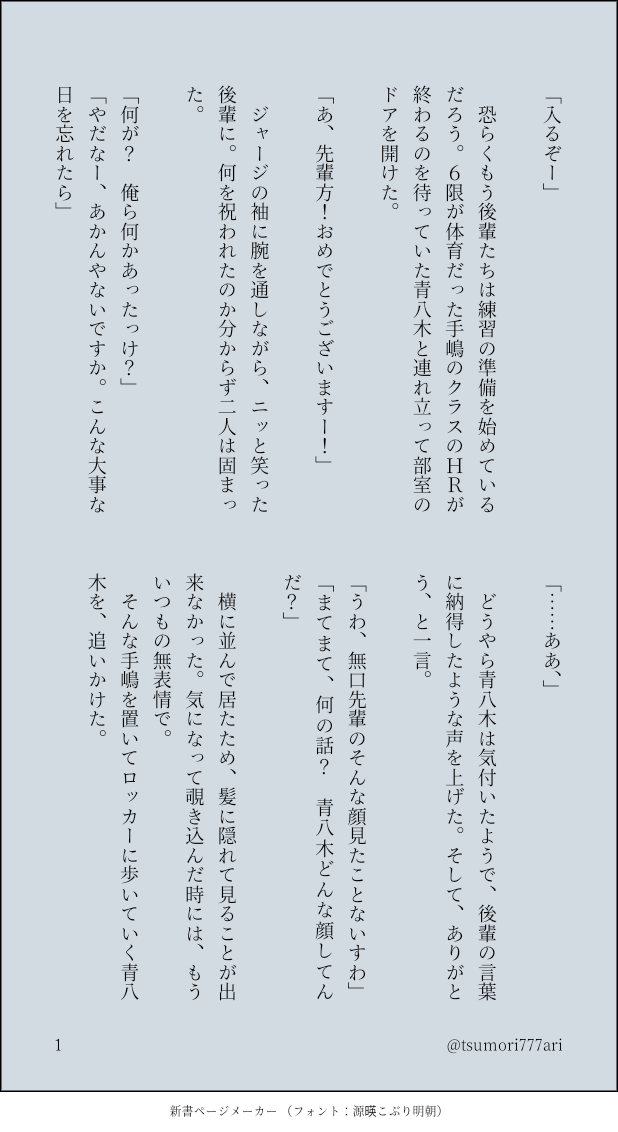 つもり☆quiet followDOODLE誰も付き合っていないソーホクシリーズ⑤ show all(+1 images) Tap to full screen (size:618x1132).Repost is prohibited Let's send reactions! freqpopularsnackothersPayment processing Replies from the creator Follow creator you care about!☆quiet follow つもりDOODLE黒研。高校生。付き合ってない。 6 つもりDOODLE黒研。二人とも大学生。付き合ってる。⚠嘔吐!飲酒由来!少しでも拒否反応のある方は止めておきましょう。読んでからの苦情は困ります。🗝▶18↑? 6 つもりDOODLE黒研。大学1年×高校3年。付き合ってない。 4 つもりDOODLE黒研。猫舌。大人。 3 つもりDOODLE影日、若干黒研。Dom/Subユニバース。世話焼きの菅原さんがメインです。 5 つもりDOODLE黒研。気付いた瞬間。 3 recommended works カカオDOODLE #えっちな推しカプ#みんなのボタンメーカー※炭善※ヤッてるだけ※失神⚠︎R18!成人済ですか?(yes or no) 2 ハナモDOODLE3RTで性癖絵を描く#絵師強制ボタン#みんなのボタンメーカーhttps://btnmaker.me/b/a38c9fa0-07de-11ec-9878-055a350dba0d↑というお題が来たので今までなんとなく黙っていた部分を吐露した takeyamaryuDONE🥃⚡⛓ #HerAlca3rtされたら推しをロリorショタにさせましょう#絵描きさんのボタン#みんなのボタンメーカー usaginoaramasaDONE⚠現パロ・肌色注意⚠今日の馬族[20231024]ボタンメーカーさんより白衣を着た推し…馬岱先生です。メガネは個人的な好みで白衣の下は…実は勢い余ってインナーを描き忘れてたのであとからソッと足したのナイショだよ!そんな裸白衣バージョンもおいておきますね… 2 waioDOODLE止颂 205YUZURU8888DOODLE 2 鵺卷恢DOODLE匂わせ☕🎨キスして彼女の付けてたリップが移るのいいよね 白ゲコ(aktkg)DONE道半ば Zlfi_lowDOODLE
