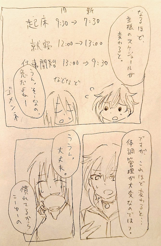 殴り書き漫画。スケジュール変更