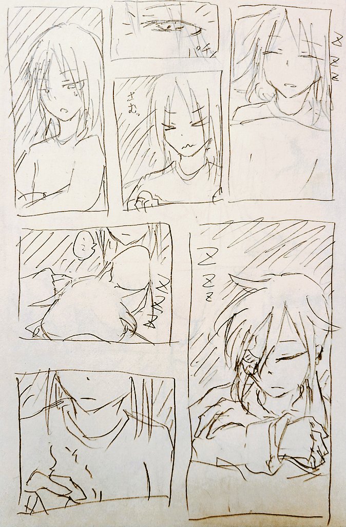 殴り書き漫画、寒い日の添い寝。
