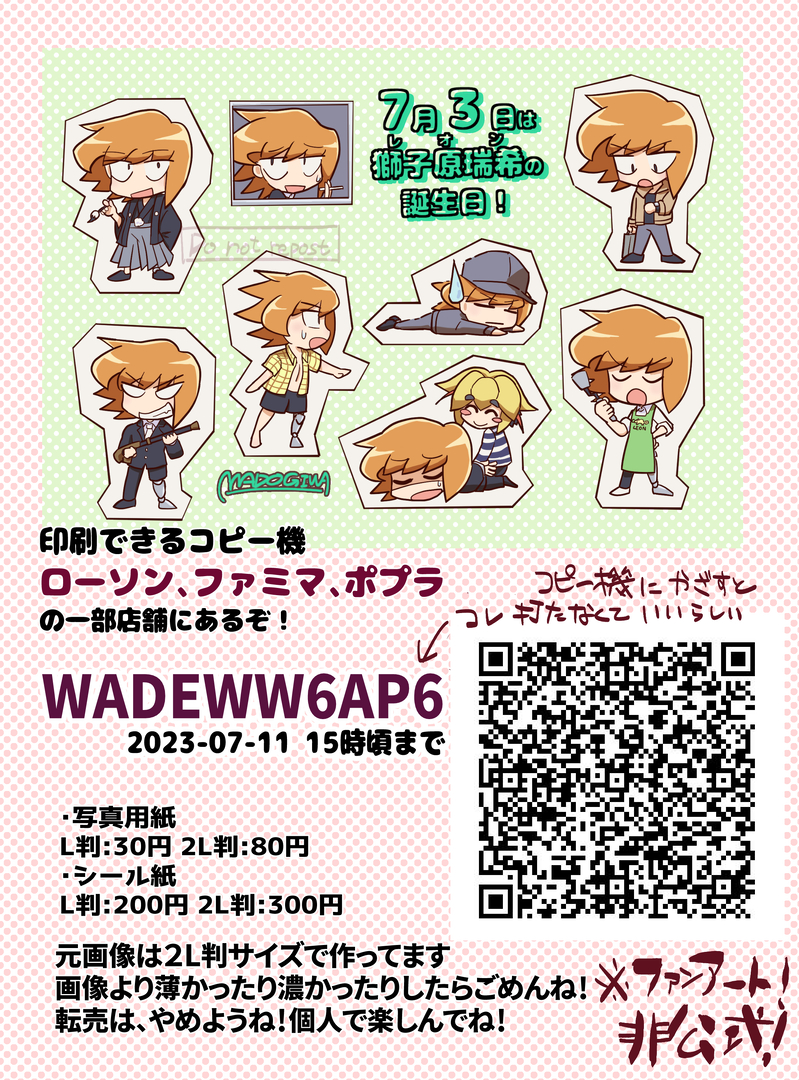 ローソン、ファミマ、ポプラの一部店舗にあるコピー機で印刷できます。