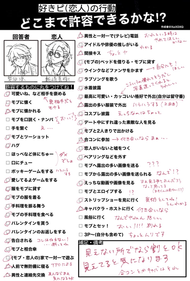 好きピ(恋人)の行動どこまで許容できるかな!?テンプレ