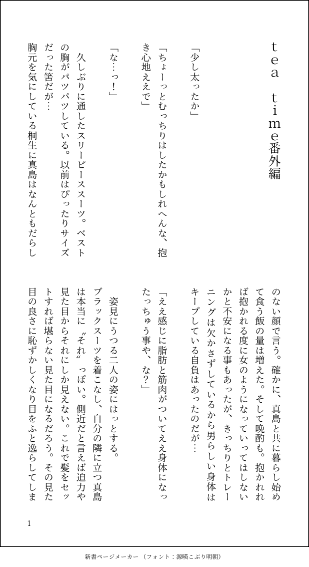 これ以上部屋に閉じこもって書類を片付ける作業を続けると気が狂いそうだと考えこっそり本部を抜け出した。仕事をサボるのをバレたくないのもあるが何処にでも護衛が着いてくる。桐生は本来、護衛など必要ないのだが風間が何としてでも付けようとする(過保護)。立場が上になったとは言え、未だに風間には頭が上がらない桐生は文句は言えなかった。
