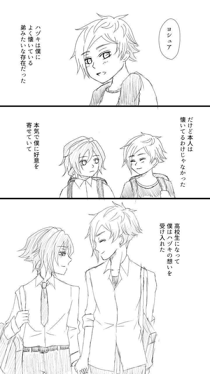 爆弾低気圧☆quiet followDOODLEボディーガードパロハヅヨシュヨシュア独自語りすけべはないけど途中裸あり注意ハに対するヨの気持ちの変化 show all(+3 images) Tap to full screen (size:720x1280).Repost is prohibited Let's send reactions! freqpopularsnackothersPayment processing Replies from the creator Follow creator you care about!☆quiet follow 爆弾低気圧DOODLEハヅヨシュ短文現代パロヤンデレヨシュアのお話病み病みのアンハッピーセット(?) 6206 爆弾低気圧DOODLEハヨ高校生パロ文ハヅキ視点出会いを書いたスーパーショートショートです 1927 爆弾低気圧DOODLEハヨパロ小説オメガバース現代モノ設定です苦手な方はご注意下さい一話で完結しております 6026 爆弾低気圧DOODLEハヅヨシュ落書きやんわり背後注意ハヅヨシュの前戯は長いと良い 爆弾低気圧DOODLER18ハヅヨシュ漫画相互さんとのミカギ君のミカギ君って大きそうって話から派生しましたあとサァァァ顔ヨシュアを描きたかった本編では絶対しないであろうヨシュアの顔を描くのが楽しい 3 爆弾低気圧DOODLEハヨネ絵前の投稿の小説表紙絵みたいなやつ recommended works Tyon。DONE五悠です。セ○レから始まるお話です。五条先輩視点 早とちりな先輩夏さんと硝さんが出てきます。苦手な方はご注意ください。ふりがなは、自分用です… 2455 Tyon。DONE五悠です。セ○レから始まるお話。セ○レだけど、好きになってしまった悠仁くん。※伏黒くん出てきます。苦手な方はご注意ください。 2066 Tyon。DONE五悠です。セ○レから始まるお話。独占欲 完誤解が解けて、仲直りするまでのお二人(イチャイチャしてますが、致していません)先輩の一人称が変化しています。ご了承下さい。苦手な方はご注意下さい。 3187 ネロ(Nero)DOODLEハヅヨシュのらくがき漫画※ハヅヨシュだけど恋愛未満ではある。※2人の過去設定は妄想です申し訳ない。ヨシュアとハヅキが実は年齢差割とあったら個人的にアツい………※ハヅリン要素ある 5 HdogyiiiDOODLE全自动掐脖装置 爆弾低気圧PASTハヅヨシュ大学生パロ小説第一部の支部カバー絵です 爆弾低気圧PASTハヅヨシュ大学生パロ小説第二部の支部カバー絵です 爆弾低気圧PASTハヅヨシュ大学生パロ小説支部のカバー絵ですここらへんからどこまで続くかわからないから第三部という概念はないです… 爆弾低気圧DOODLEハヅヨシュ大学生パロ文8話場面落書き両想いになったこの二人の文を書くのがなんか恥ずかしい