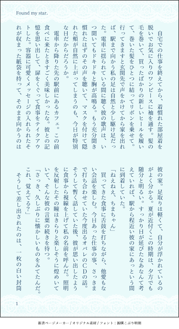ちまちゃん☆quiet followDONEFound my star. #ヒロちま hirochima show all(+6 images) Tap to full screen (size:618x1132).Repost is prohibited Let's send reactions! freqpopularsnackothersPayment processing Replies from the creator Follow creator you care about!☆quiet follow ちまちゃんDONEOver The SUMMER! 11 ちまちゃんDONEクリームソーダに愛を乗せて 6 ちまちゃんINFOこの愛ごと抱きしめて。🖋@_y__175 5 ちまちゃんDONEオムライスとメッセージ 7 ちまちゃんDONE必殺技「我儘」の使い方講座 8 ちまちゃんDONE幸福論 8 related works ちまちゃんDONESlowly slowly. 7 ちまちゃんDOODLEちまねねデートがダブルデートになるまでのヒロちま🧸#ヒロちま 5 ちまちゃんDONESugery bath room🛁 8 ちまちゃんINFOCHocolate HoliCpresented by HIRO&CHIMAphoto by NENE YUKISHIRO 12 ちまちゃんDONEBefore anniversary. 10 ちまちゃんDOODLEおふろあがりのヒロちま🧸 6 ちまちゃんDONEFound my star. 7 ちまちゃんDONE生徒Cの幼馴染観察日記 7 ちまちゃんINFO𝓗𝓮𝓻𝓸𝓲𝓬 𝓒𝓲𝓷𝓭𝓮𝓻𝓮𝓵𝓵𝓪.Hiro Hayami × Chima MinamiOfficial fan book vol.12021.06.10cover:Nene Yukishiro.Word:Chima Minami. 48