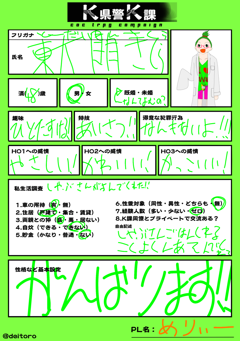 merry26f☆quiet followDOODLEずっとやろうと思ってたやつ#K課履歴書2枚目はPLによる添削入りK課ネタバレあり⚠️げんみ❌ show all(+1 images) Tap to full screen (size:2039x2893).Repost is prohibited Let's send reactions! freqpopularsnackothersPayment processing Replies from the creator Follow creator you care about!☆quiet follow merry26fDOODLECoC「お前が人を殺すのだ」げんみ❌描きたかったやついやぁ 本当良いシナリオだね えぇ merry26fDOODLECoC「きみは100億万ドル」ネタバレありげんみ❌マラの差分 merry26fSPOILERごだるかげんみ❌仮にごだるか全部わちをやったら妄言該当探索者一覧編一応全員ちゃんと(?)理由あるのでそれは改めて merry26fDOODLEごだるか悪魔アビスの雑落書きネタバレはないが女装注意 2 merry26fDOODLEゴダルカげんみ❌HO悪魔の雑落書きまじで雑くおりてぃです3枚目は更にエンデビネタバレもあり⚠️げんみ❌ 3 merry26fDOODLEずっとやろうと思ってたやつ#K課履歴書2枚目はPLによる添削入りK課ネタバレあり⚠️げんみ❌ 2 related works ミシマサイコDONE #K課履歴書 汚いほう 2 ぜんらんらんDONE #K課履歴書法螺吹きのやつ 青い文字は嘘 2 merry26fDOODLEずっとやろうと思ってたやつ#K課履歴書2枚目はPLによる添削入りK課ネタバレあり⚠️げんみ❌ 2