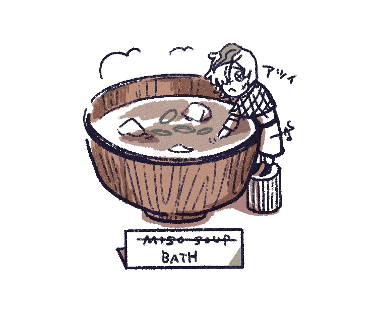 風呂の温度確かめるフナモリ