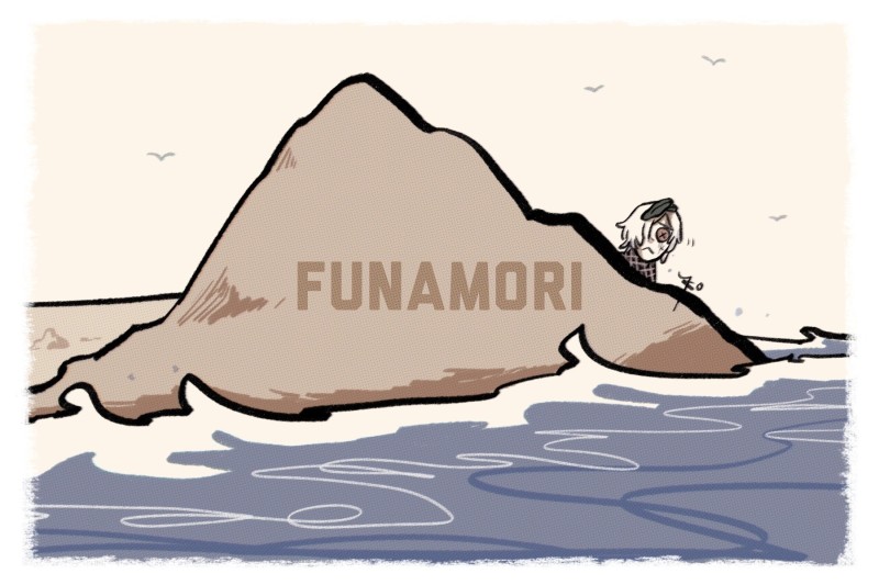 顔を出そうか迷うフナモリ