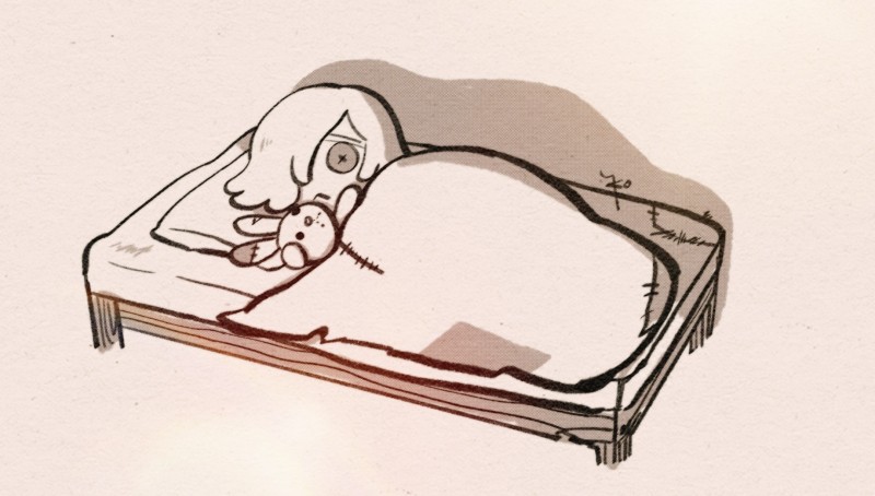 内職するお母さんを見ている子ドル
