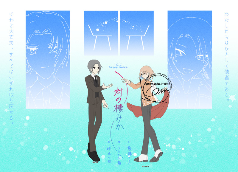 nekomutrpg☆quiet followDONEかなむら 様作キャンペーンシナリオ『対の棲みか』(以下敬称略)KPC / KP : 小子内 明望 / ねこむPC / PL : 纓坂 四季 / でにーPC、KPC両生還にてキャンペーン終了 ##卓報告 ##探索記録 Tap to full screen (size:8900x6427).Repost is prohibited Let's send reactions! freqpopularsnackothersPayment processing Replies from the creator Follow creator you care about!☆quiet follow nekomutrpgSPOILERVOID HO4 表情差分⚠️CoC『VOID』雰囲気ネタバレありのため、現行・未通過閲覧❌ (問題無い方は「ok」) 3 nekomutrpgDONE『VOID』 HO4 アラングラー nekomutrpgDONEみゃお 様作『VOID』(以下敬称略) HO1 天塚 夏月 / セレナ HO2 雪雫 / 蒼翠鹿 HO3 戌治 良狩 / ひめぬし HO4 アラングラー / ねこむ全生還にてシナリオクリア 2 nekomutrpgDONE『A Moment in Limbo』(以下敬称略)作・KP : 松PC / PL : - HO1 諏訪 ノノウ / マ° - HO2 ウィットリー / ねこむ - HO3 オルド・ロドリゲス / 未軌 - HO4 - / でにーエンド2 2生還・2特殊継続にてシナリオクリア nekomutrpgSPOILERアンポジ2周年だね~それとは関係ない絵だよ~何も考えてないよ~ネタバレ要素ほぼわからん※アンチテェゼ・ポジション ネタバレ要素有 pass→ok 4 nekomutrpgDONEVOID HO4 ビジュ recommended works shinoSPOILER【従者くん】仮面のバニー君 マスク×バニーでしか得られぬものを教えていただいたので落書💵 3 LemonPigeonHEYDOODLE校郁+推罗,4p但纯爱 halfhoomancatDONEWanScaraLumi 😋Pass : Are you 18+ or not? My bday?(yes/no)mmdd*Bday can be seen on my profile when you follow me. aburimochiumaiTRAININGレイシオが手だけのレイチュリ🛁🦚エロチャレ裏に上げてたやつの修正版&書き文字練習18↓?(y/n) sirome0_0MOURNING大人ツッキーの目の前に現れた想い人。 729 _zwei_zweiMEMOCoC6 『町葬屋怪異譚』 ▼HO3 火葬係不知火 燈あなたは町葬屋の火葬係だ。火の扱いは誰よりも知っている。 あなたには「喪失」しているものがある。イラスト: @pandora24182 suzsr0DOODLE𝙲𝚘𝙲「黄身と蜂蜜」𝙺𝙿:槭𝙺𝙿𝙲:瑞泉 想真𝙿𝙻:すず𝙿𝙲:三田部 啓𝙴𝙽𝙳𝙰 両生還 guacatosDOODLE[ gawthaway ]gawman nobile x hathaway noa 3 pics, from june i think... 3 MERS_DOODLE伪人成步堂?!NSFW有 5