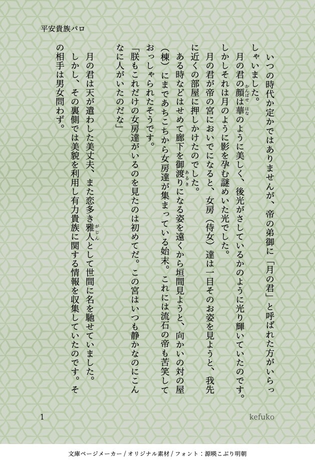 kefuko☆こそフォロらくがき平安貴族パロ Xにあげたものこちらにも貼っときます書き進む気がしないのでwww晒します。だいぶ前のワンドロお題お借りしてます。全然書き出しだけ。男装女子モノにしたかった。 最初だけ 🌙しかおらん物語調 難しい 源氏は読んだことない笑 すべて表示(+1枚) タップで全画面(原寸:630x928)無断転載禁止 リアクションをたくさん送って応援しよう! よく使う人気おやつその他支払処理中 作者からのリプライ 気になる人をどんどんフォローしよう!☆こそフォロ kefukoらくがき平安貴族パロ Xにあげたものこちらにも貼っときます書き進む気がしないのでwww晒します。だいぶ前のワンドロお題お借りしてます。全然書き出しだけ。男装女子モノにしたかった。 最初だけ 🌙しかおらん物語調 難しい 源氏は読んだことない笑 2 kefuko作業進捗瑞月はあれから図書館に通っているが彼女には会えずにいた。同じ大学内にいるのにもう会えないのだろうか。現パロ、大学生、壬猫、付き合ってない。モブ出ます。 2506 kefuko作業進捗現パロ 大学生 壬氏猫猫🌙おぼろげな記憶あり ガッツリ転生ものではなく何と無く要素ありぐらいの感じ 1516 kefuko作業進捗現パロ大学生壬猫🌙ほんのり記憶あり?メンヘラ?まだ🐈でませんSS 序・夢の女 828 kefukoできた🐈の子を育てる🌙の話。最終話。壬猫。現パロ。ようやく真実を伝えた🐈。首輪付きとは飼い猫になること。 3188 kefukoできた一人で🐈の子を育てる🌙の話。其の4。今日も粛々と仕事をこなす🌙のもとに急な知らせが。壬猫。捏造子でますので苦手な方は回避お願いします。🌙は子供の父親は自分ではないと思っているがはたして真相は? 3380