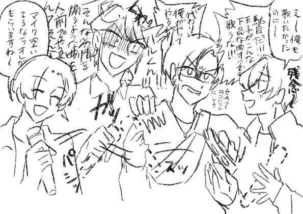 ぽわみ☆quiet followDOODLEオメでたい頭でなによりの「チンアゲ交渉中」と、王道王子アイドルと、厄介王子厨パートナーと、限界自称Pと、カオス慣れしているきな粉くん。きな粉くんはバーテンだしマだし、きな粉ちゃんとの会話の雰囲気から想像しても、多分こういう展開でも舵取りをしてくれそう。あとめち兄とハルくんはちょっとアホだと嬉しい。 ##TSマイキャラ Tap to full screen (size:595x420).Repost is prohibited Let's send reactions! freqpopularsnackothersPayment processing Replies from the creator Follow creator you care about!☆quiet follow ぽわみTRAININGメンズ顔描かなさすぎて忘れたので練 6 ぽわみMOURNINGHALくんがデビューするまでの話。某ボーイズグループのムキムキ担当が初めてのステージで緊張して袖で泣いちゃったのをおふざけキャラくんが手を握って安心させ、それ以降手を握るのがステージ前の二人のルーティンだという話に爆萌えしで自ユニでも見て~~と思い書いた。が、飽きた。気が向いたら完成します。あとこれ別にTSじゃなくてもいい。 4551 ぽわみPROGRESS新刊進捗 4 ぽわみPROGRESS文字書き練習もかねて。芸で頒布するやつにねじ込みたい。NOT CPの自ユニSSのプロローグ。 1746 ぽわみDOODLETSつめ。1&2枚目はほしい物リストのお礼イラスト用の衣装案 5 ぽわみDOODLE版権色々。貴様は古傷がうずくことはありませんか? 7