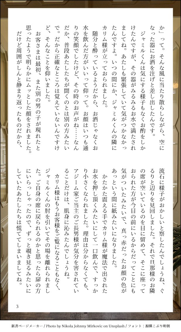 nylon_twst☆quiet followPAST【モブランド】ベテラン使用人女性、語る(カリジャミ) show all(+3 images) Tap to full screen (size:618x1132).Repost is prohibited Let's send reactions! freqpopularsnackothersPayment processing Replies from the creator Follow creator you care about!☆quiet follow nylon_twstPAST【モブランド】ベテラン使用人女性、語る(カリジャミ) 4 nylon_twstPAST【モブランド】モブ女児、旅のおにいさんとの想い出を綴る(カリジャミ) 3 nylon_twstPAST【モブランド】スカラビア寮生モブたちがダラダラ喋ってるだけ(カリジャミ) 4 nylon_twstPAST【モブランド】去勢済みストーカーモブが想いを遂げて〇ぬ話(カリジャミ前提モブジャミ ※R18) 4 nylon_twstDOODLE※※※概念だけど骨見えてるので大丈夫な人だけごめんね ごめんね/ハート以外のところも他の誰にもあげないでほしいよ nylon_twstDONEオメガバース α×αのカリジャミ⚠️R18⚠️カがジャ以外の人とも経験がある前提※文章です※まだつづく 13 recommended works 朝暮夕DOODLE[新风]色色可以色色 ぶるみんDOODLEぐだカドの逆バニーです全然間に合わんかったpass 数字4桁(鍵垢の固定ツイに載せてます) halfhoomancatDONEWanScaraLumi 😋Pass : Are you 18+ or not? My bday?(yes/no)mmdd*Bday can be seen on my profile when you follow me. 岩永アキラBDONE『日はまた昇る』真ED本編の余韻がひたすら台無しになる超ハイパー強引ハッピーエンドです。俺にしか配慮がされていないので、倫理観など崩壊しています。お覚悟の上お読み下さい!!! 7 神紅印の下水道DOODLE原作に寄せた顔でゲロ CarybeDOODLEWarning: fem Kaveh 🔥🔥🔥Pass: Kaveh's birthday (dd/mm) 4 ひじのくぼみDONE書き初め大遅刻!!あけましておめでとうございます!🦋で呟いてたもの⚠️父水⚠️完全に出来上がってる👻族✖️現代まで不老長生きおじさん⚠️モブ視点倅視点まで辿り着けなくて無念…ほとんど見直してないのでめちゃ誤字脱字ある&読みづらい 4 sssssssn_ymDOODLE千ゲ 小スカ大丈夫な人だけ見てね ngrDONEアイスマイリン🍨🍬🧸