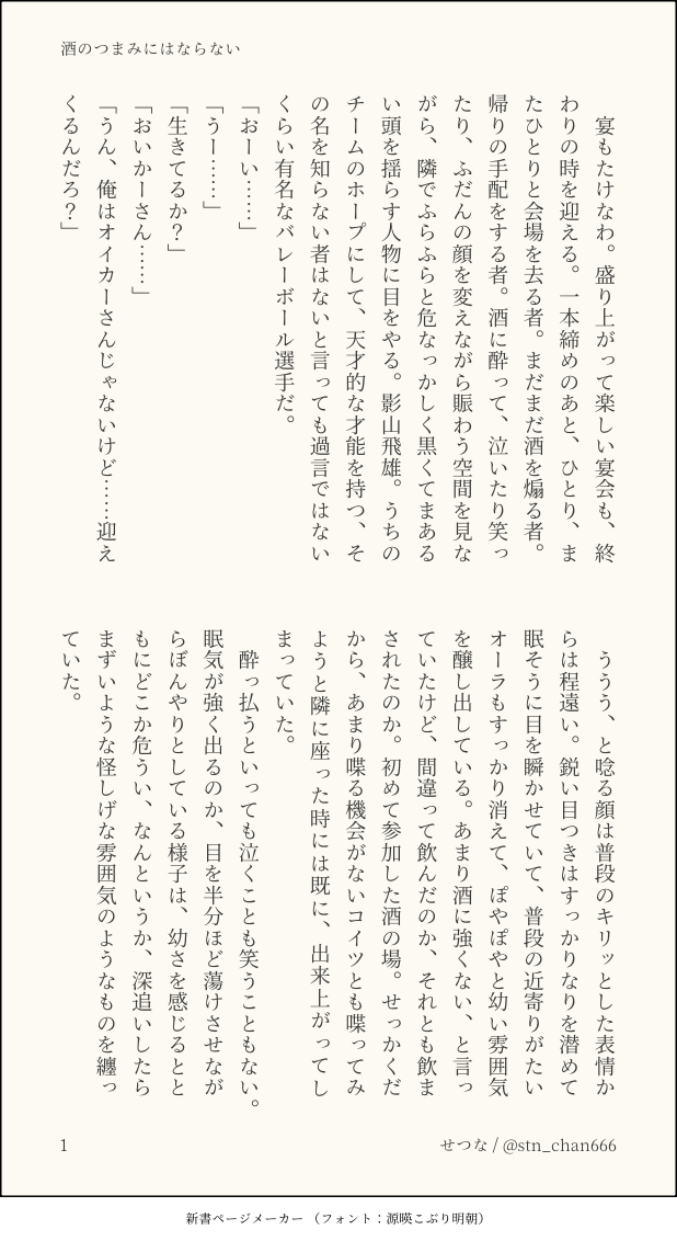 せつな。☆quiet followDONE『酒のつまみにはならない』大学生ifの、モブ視点 show all(+6 images) Tap to full screen (size:618x1132).Repost is prohibited Let's send reactions! freqpopularsnackothersPayment processing Replies from the creator Follow creator you care about!☆quiet follow せつな。MENU『23時に待ち合わせ』及影ワンライまとめのまとめたやつまとめ 40 せつな。DOODLE特別なにかあるわけでもなく日常にあふれた一コマの中でぽろっとプロポーズしちゃうやつが好きなんだよね、という及影らくがき 2 せつな。DONE『魂の在り方』俳優パロ及影 9 せつな。DONE『酒のつまみにはならない』大学生ifの、モブ視点 7 せつな。DONE『仮面はいらない』ワンライお題:カフェ 5 せつな。DONE『そうして一歩、出遅れる』🇦🇷及と🇯🇵影の時差及影