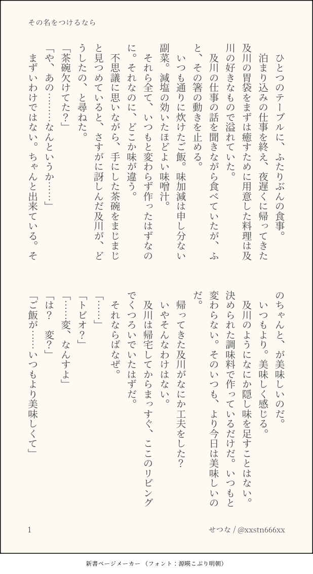 せつな。☆quiet followDONE『その名をつけるなら』 show all(+2 images) Tap to full screen (size:618x1132).Repost is prohibited Let's send reactions! freqpopularsnackothersPayment processing Replies from the creator Follow creator you care about!☆quiet follow せつな。MENU『23時に待ち合わせ』及影ワンライまとめのまとめたやつまとめ 40 せつな。DOODLE特別なにかあるわけでもなく日常にあふれた一コマの中でぽろっとプロポーズしちゃうやつが好きなんだよね、という及影らくがき 2 せつな。DONE『魂の在り方』俳優パロ及影 9 せつな。DONE『酒のつまみにはならない』大学生ifの、モブ視点 7 せつな。DONE『仮面はいらない』ワンライお題:カフェ 5 せつな。DONE『そうして一歩、出遅れる』🇦🇷及と🇯🇵影の時差及影 recommended works moyuu_lcPAST中国語こまひまんが (2021/2) 2 ceyu9999DOODLE【代号鸢策瑜】鸳鸯被里成双夜 konoha_reireiDOODLEゴン~ 4 咒偶.DOODLE迟来的情人节 井倉めじかDOODLE【現パロ】おかえり(クリアル・2枚目ちょい薄暗い怪文付き) 2 MKK4QDYEqNNLP0TDOODLE去年のオキラスlogをまとめきれていないので近いうちにまとめます 7 たわにさんDOODLEいこみず(ワンドロ「肩」で描いたものです。)噛み癖があるイコさん大好き!!!パスワード:18歳より歳上ですか?(y/n) とらはらDOODLE手合わせ台詞 時間経過が感じられて好きなんですか「かわいい尻尾」て 武器忍DOODLECAT DAY